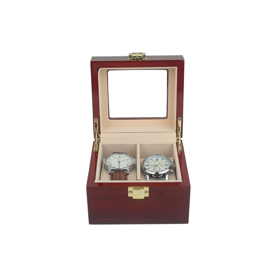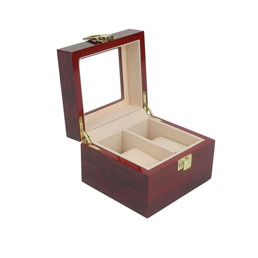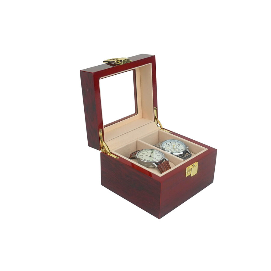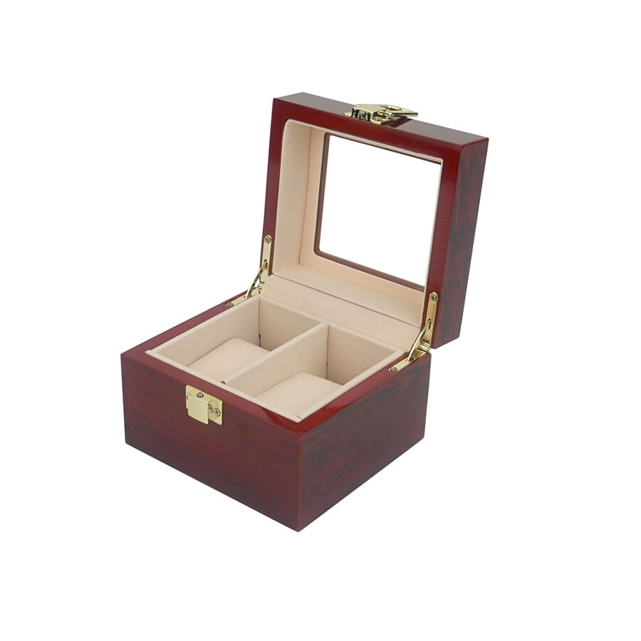 علبة ساعات مطلية جاهزة للشحن، علبة عرض وتخزين خشبية لمجوهرات ذات غطاء قابل للطي بفتحتين
