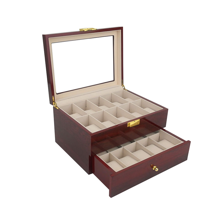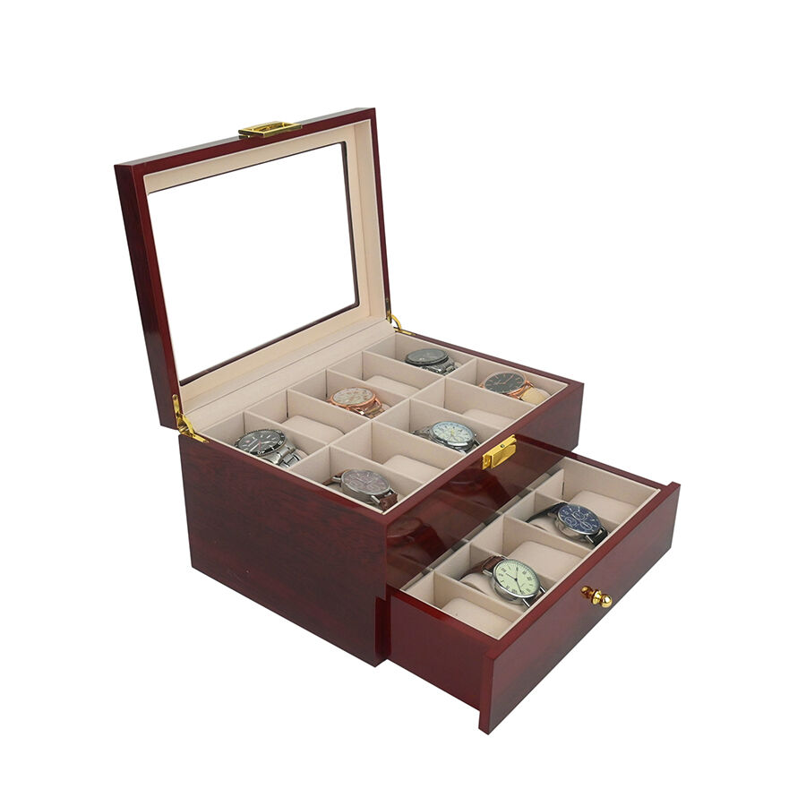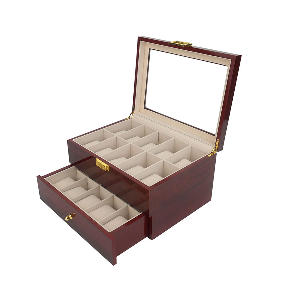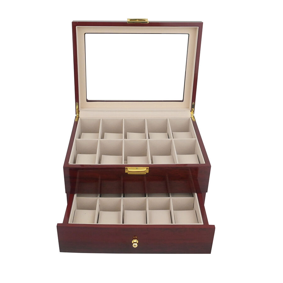 caixa de rellotges de fusta lacada d'alta qualitat amb tapa giratòria i 20 ranures, estuch antipols per a emmagatzematge de joies