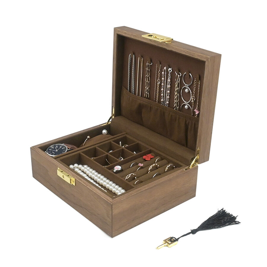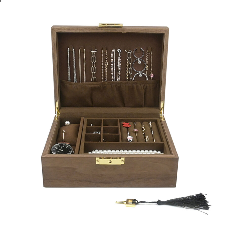 Luxusní dřevěná skříňka na šperky s uzámkem pro náhrdelníky a prstýnky, vysoce kvalitní, lehká luxusní varianta