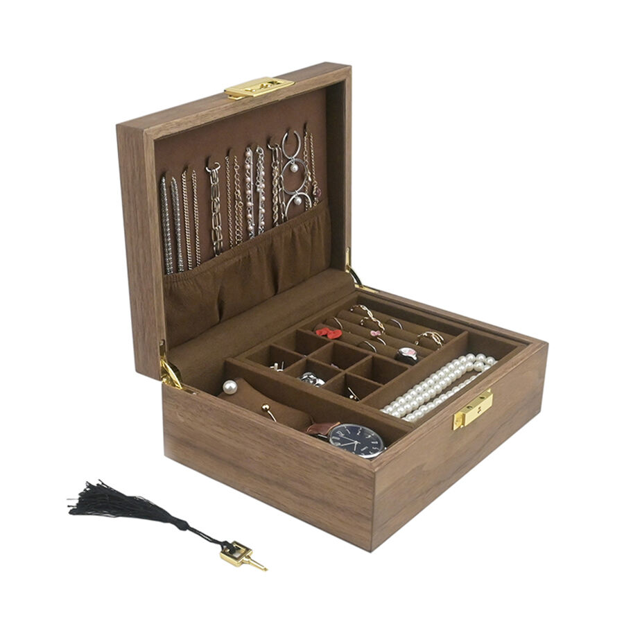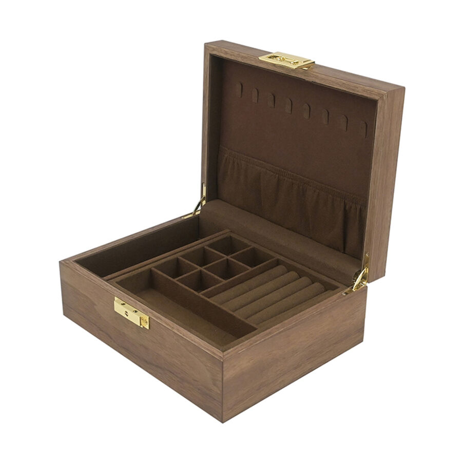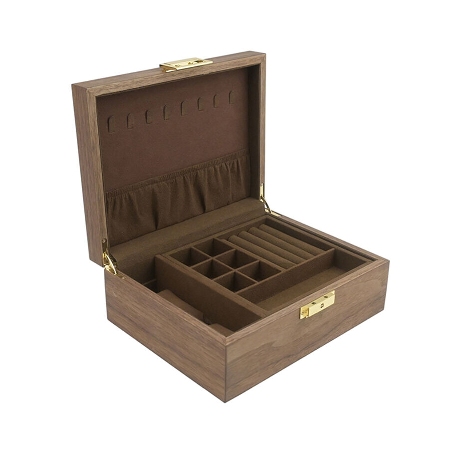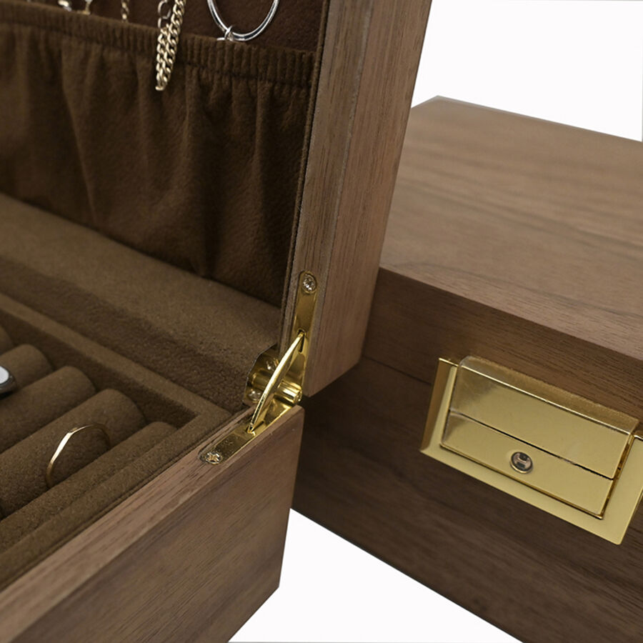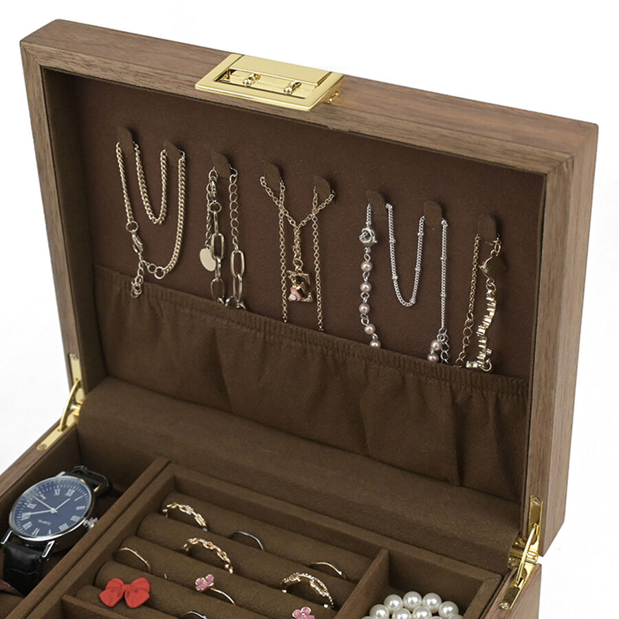 Premium šperkovnicový organizátor z dřeva s lehkým luxusem a bezpečnostním zámkem, elegantní úložný box pro náhrdelníky, prstýnky a osobní šperky