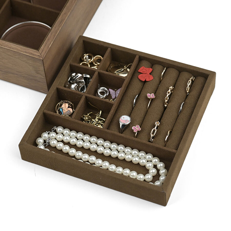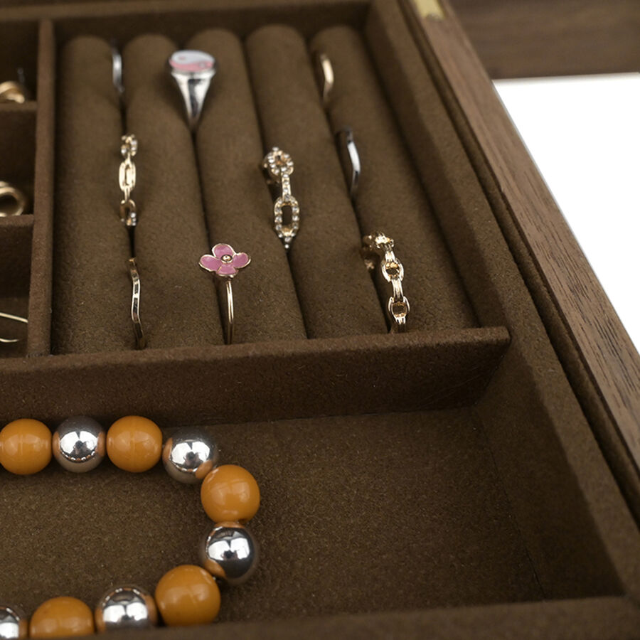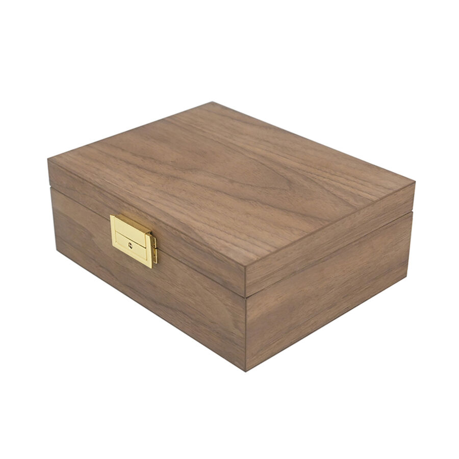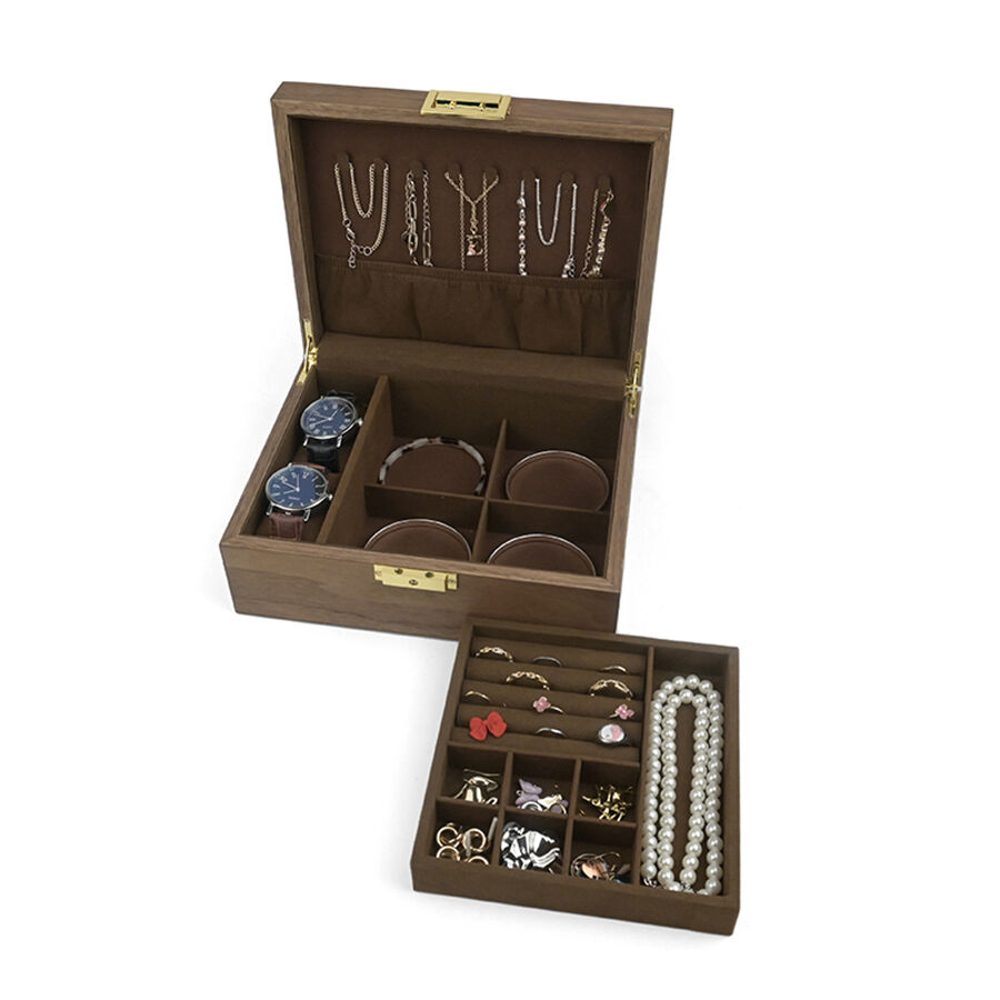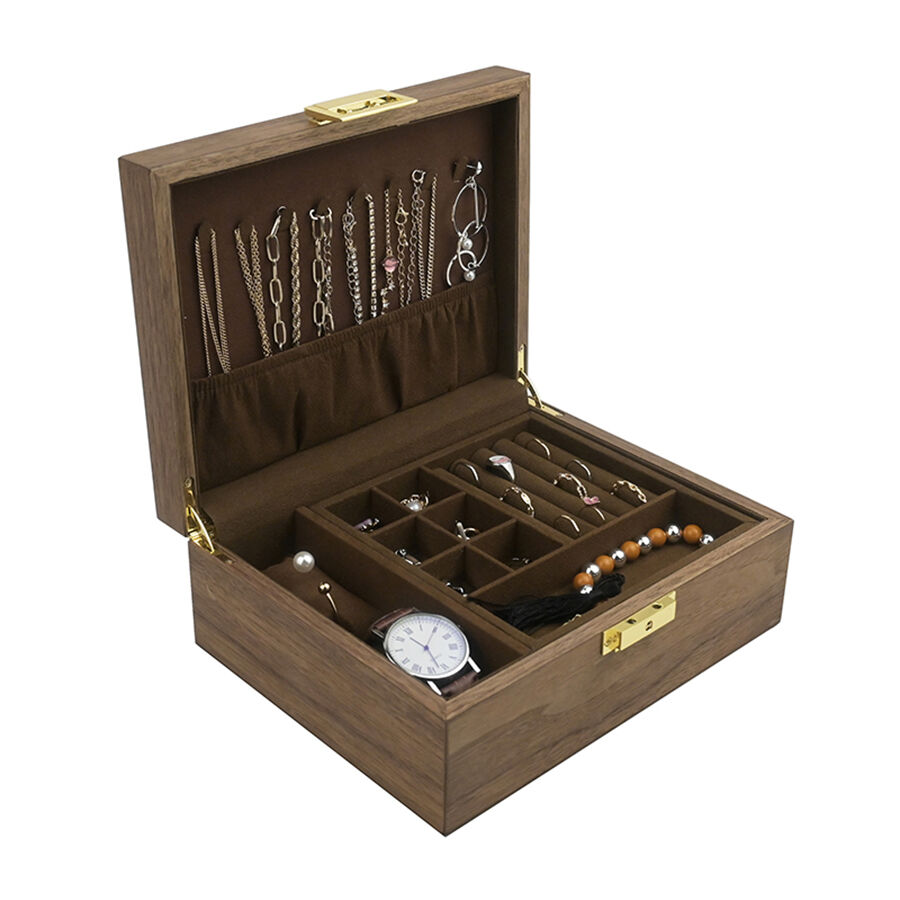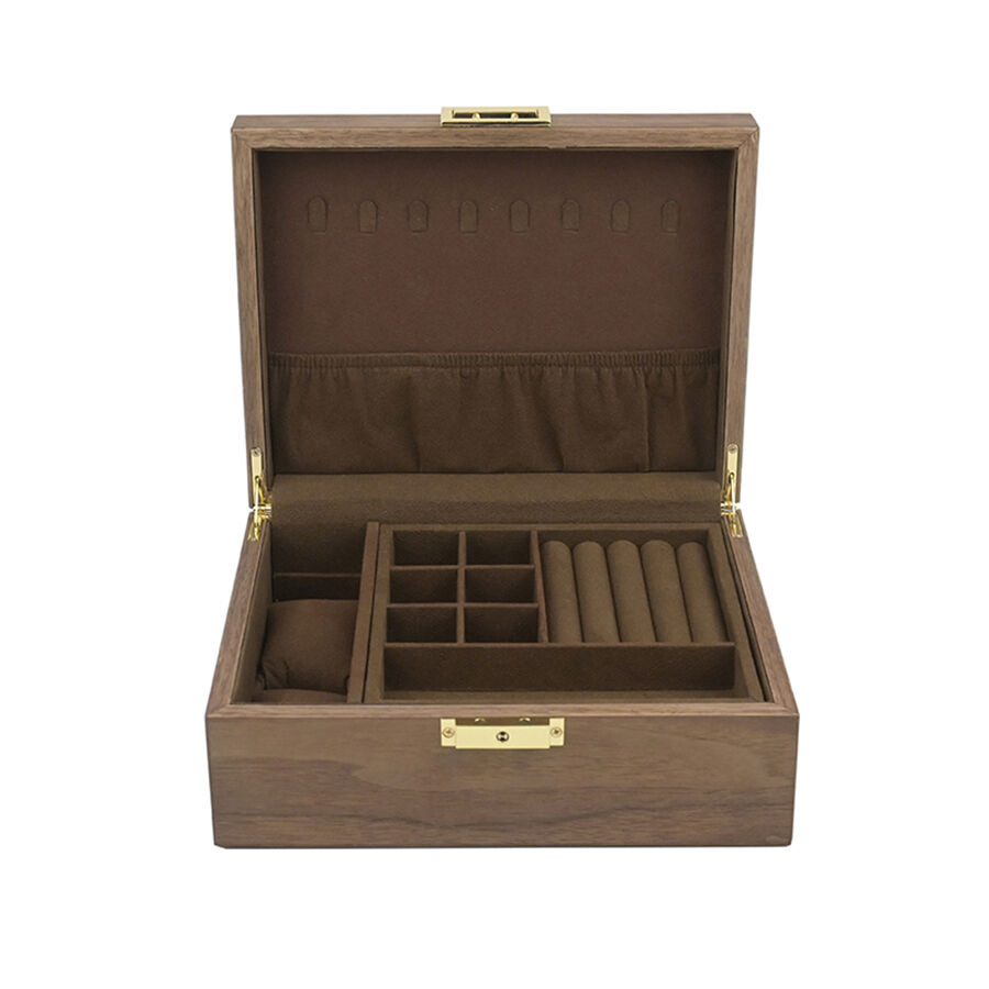 Premium šperkovnicový organizátor z dřeva s lehkým luxusem a bezpečnostním zámkem, elegantní úložný box pro náhrdelníky, prstýnky a osobní šperky