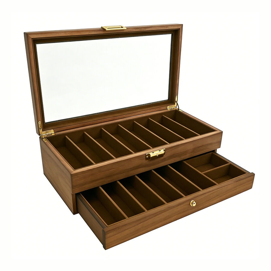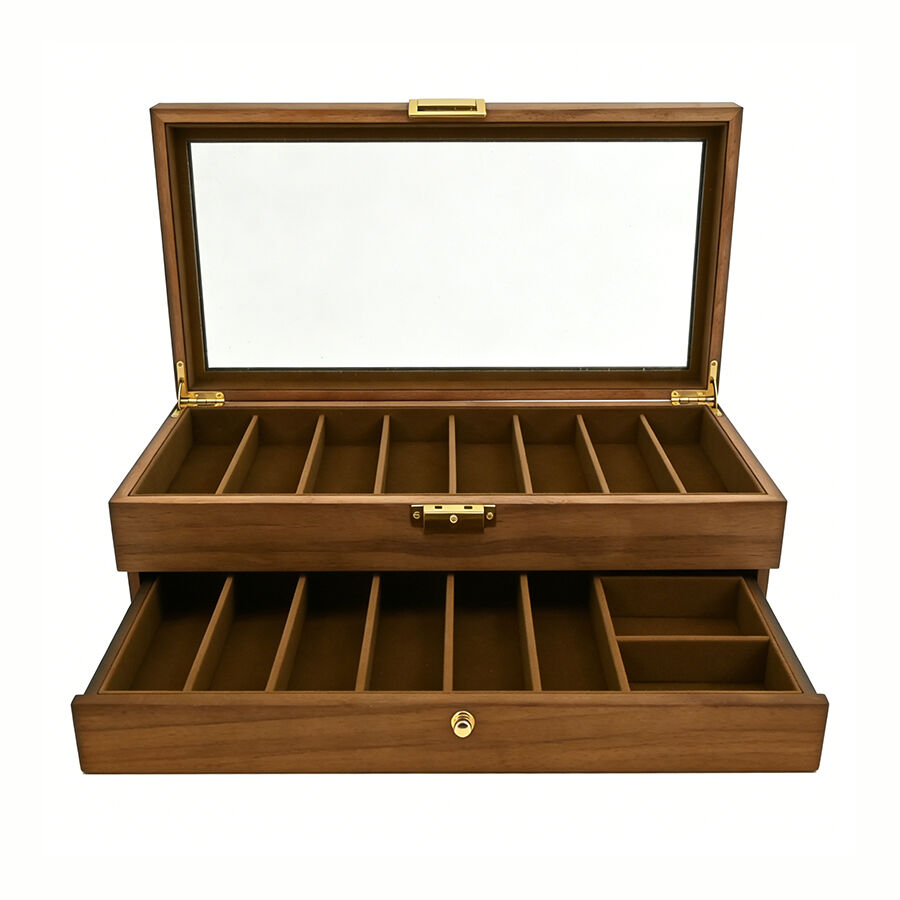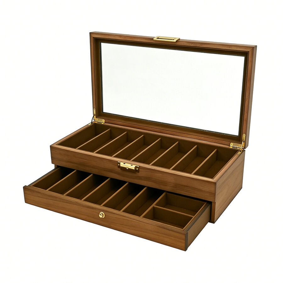 Dvouvrstvá prachotěsná dřevěná skladovací krabička se zámkem | Univerzální organizátor pro kuchyňské potřeby, nářadí a kozmetické sady
