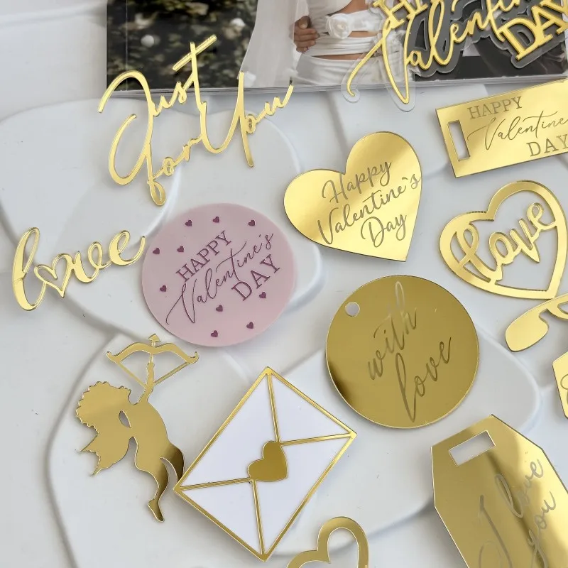 Rakkaudenpäivän leivonnaiskakkujen koristeet: MR&MRS ja rakkaus -aiheinen häätapahtumaan, akryylinen kakkupäälline