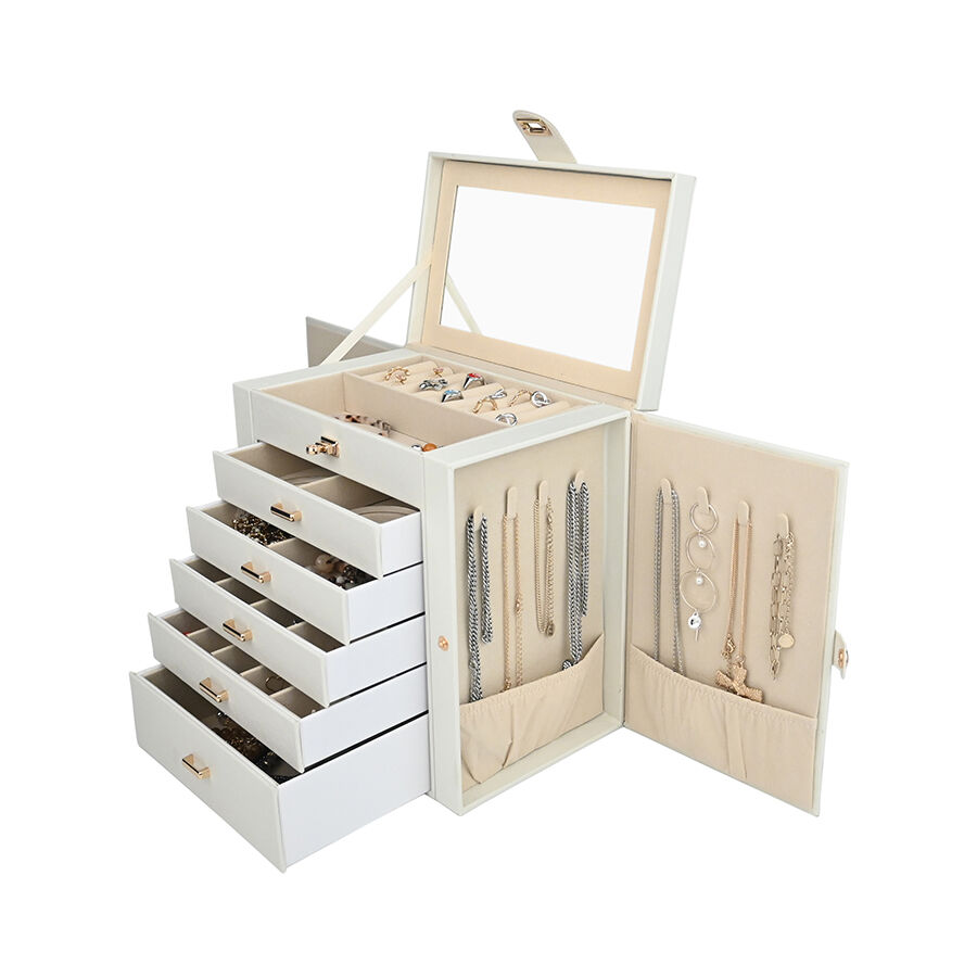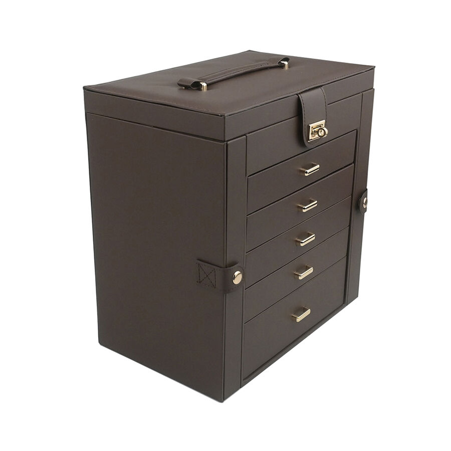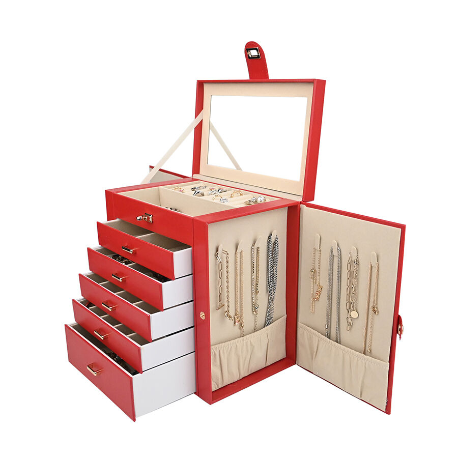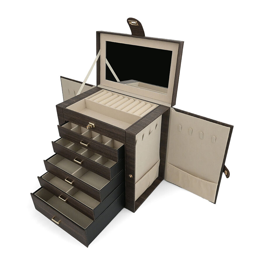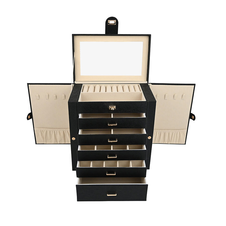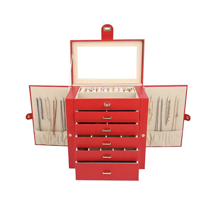 उच्च-क्षमता वाला छह-स्तरीय प्रीमियम लेदर गहने का बॉक्स अंगूठियों, हार और व्यक्तिगत सहायक उपकरणों के लिए, बहुक्रियाशील भंडारण व्यवस्थितकर्ता