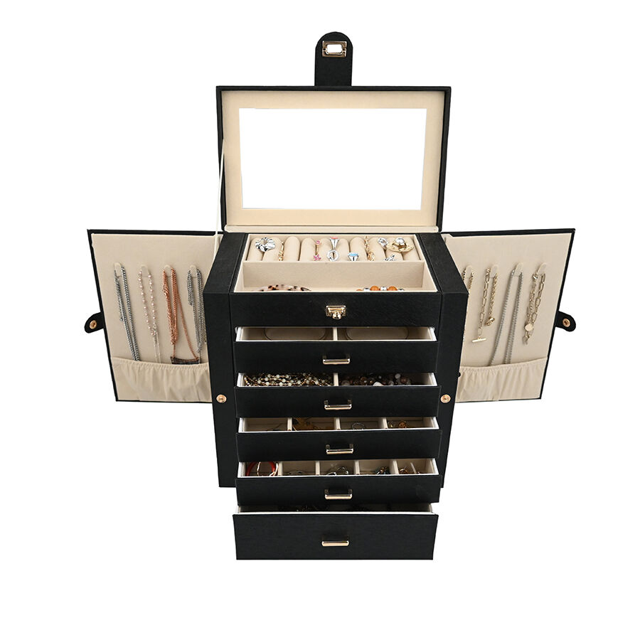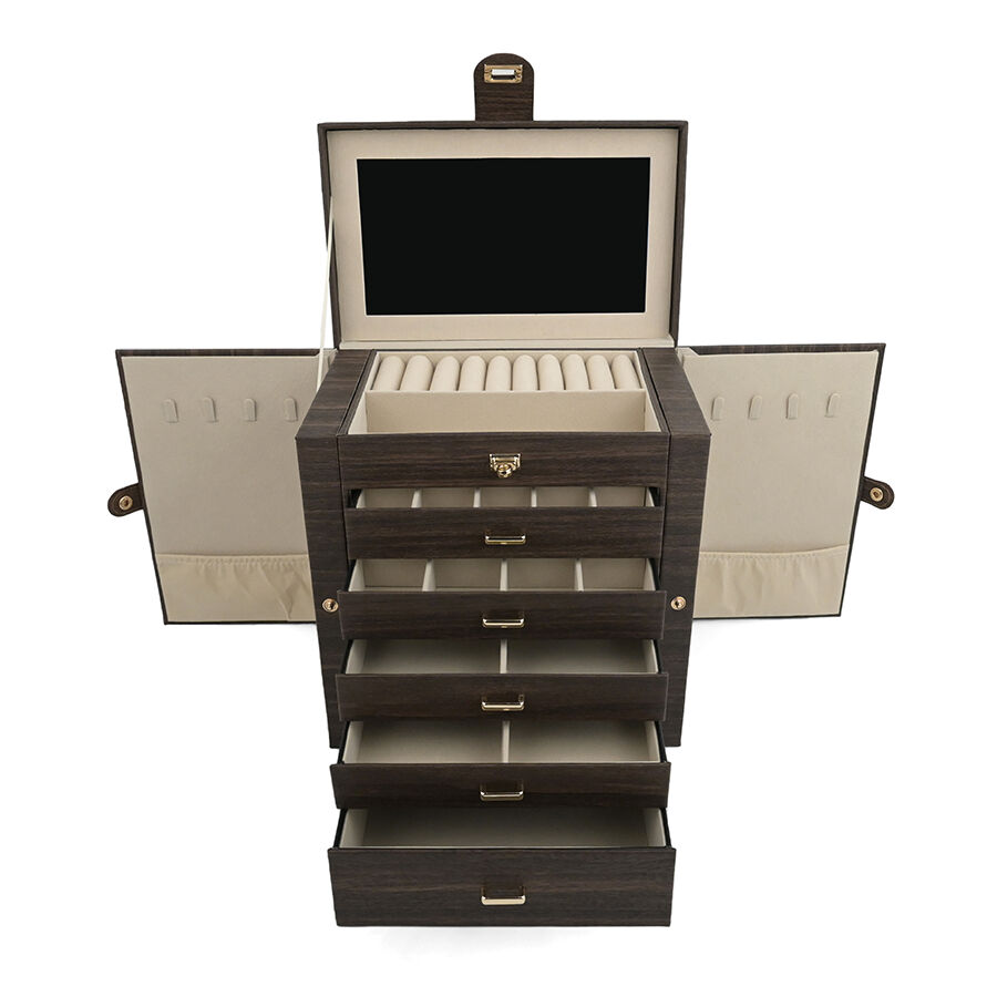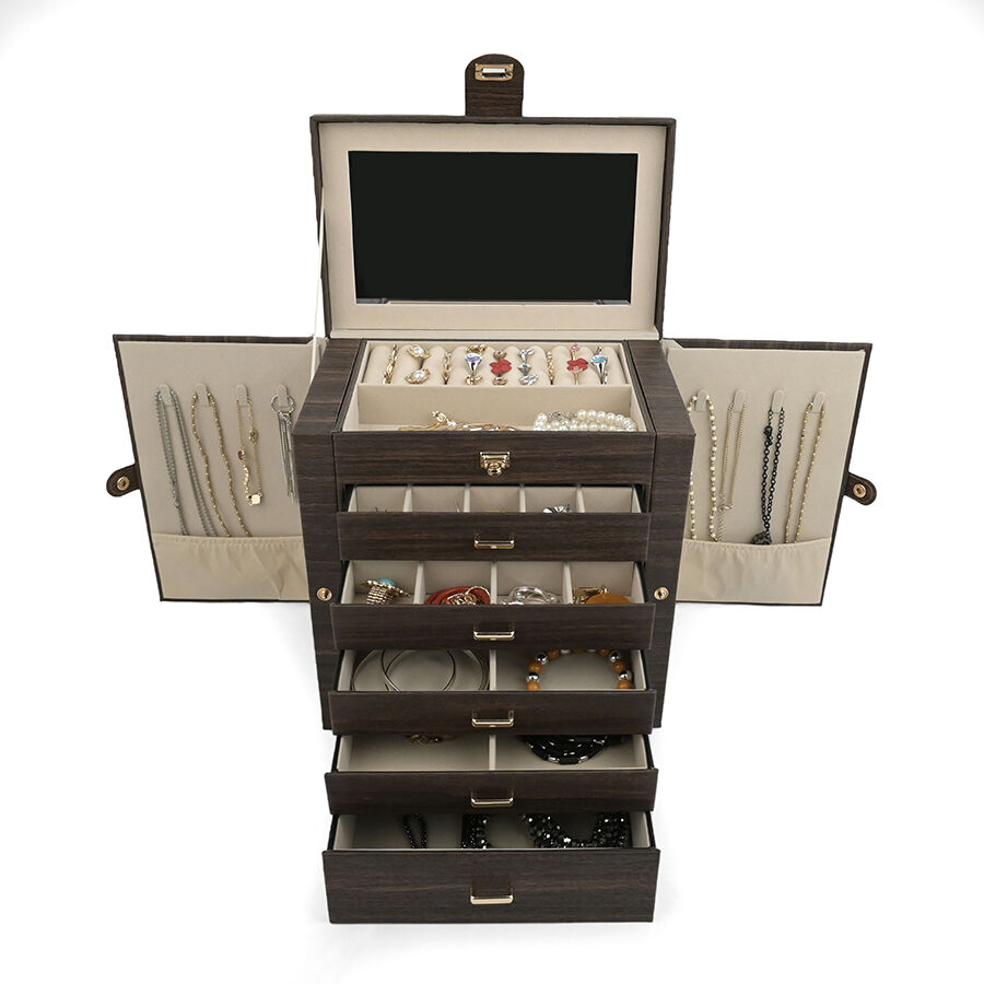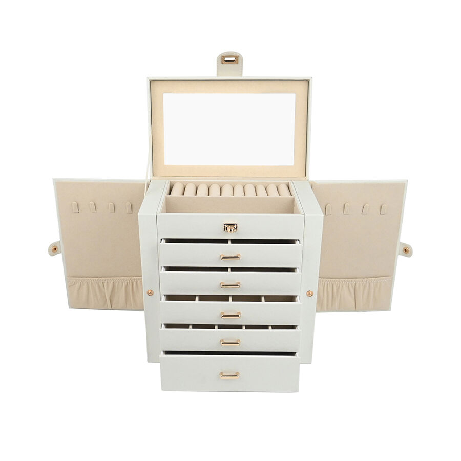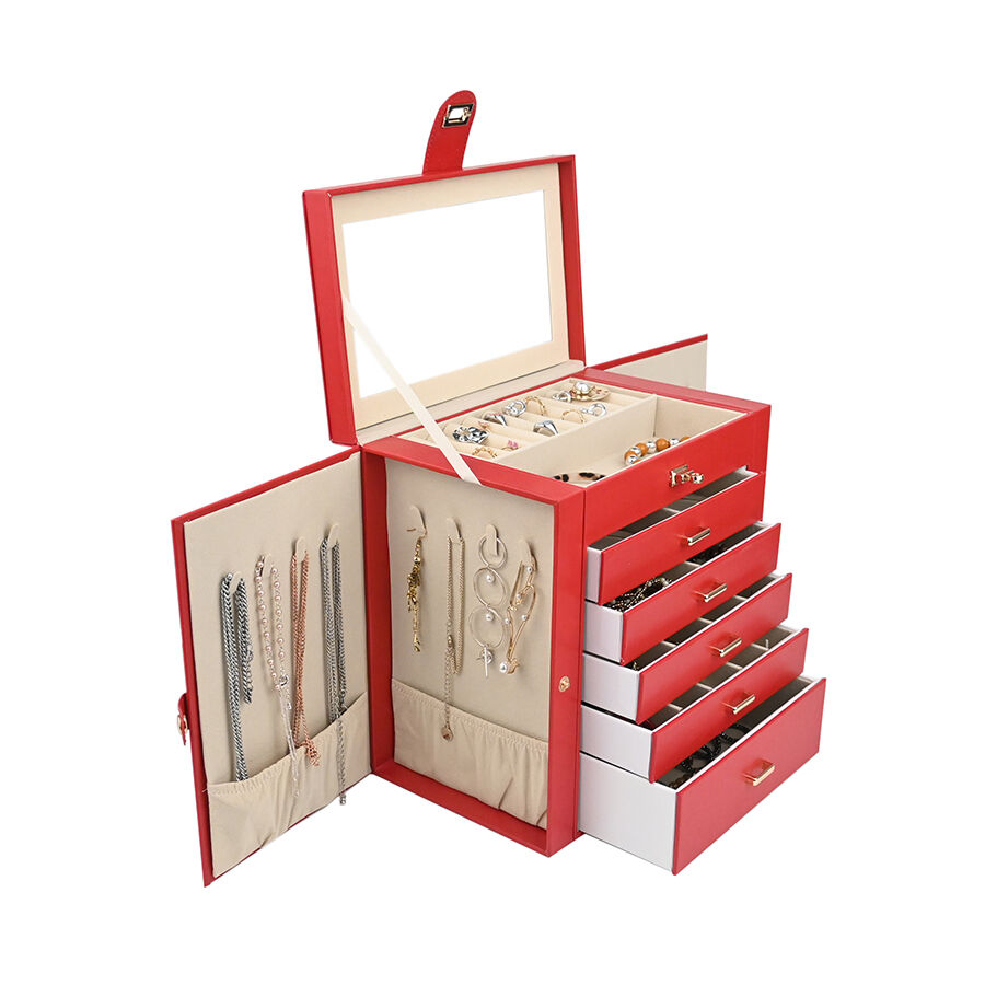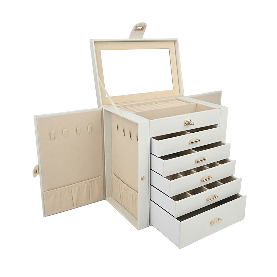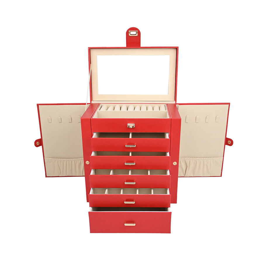 उच्च-क्षमता वाला छह-स्तरीय प्रीमियम लेदर गहने का बॉक्स अंगूठियों, हार और व्यक्तिगत सहायक उपकरणों के लिए, बहुक्रियाशील भंडारण व्यवस्थितकर्ता