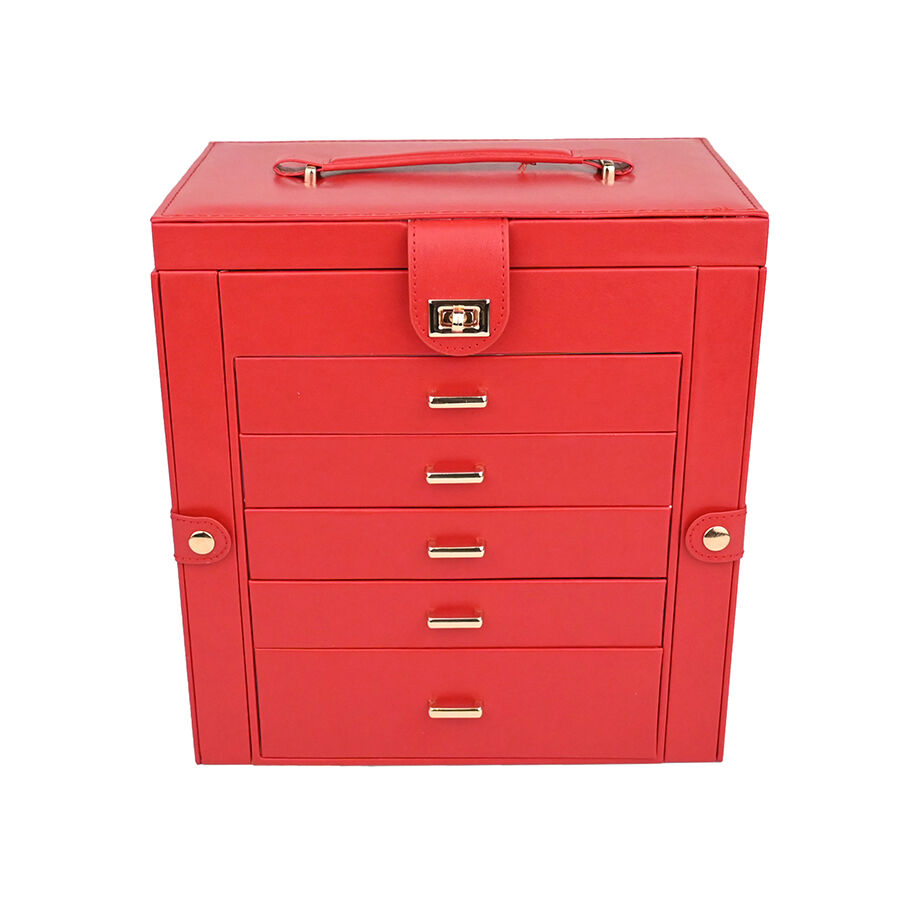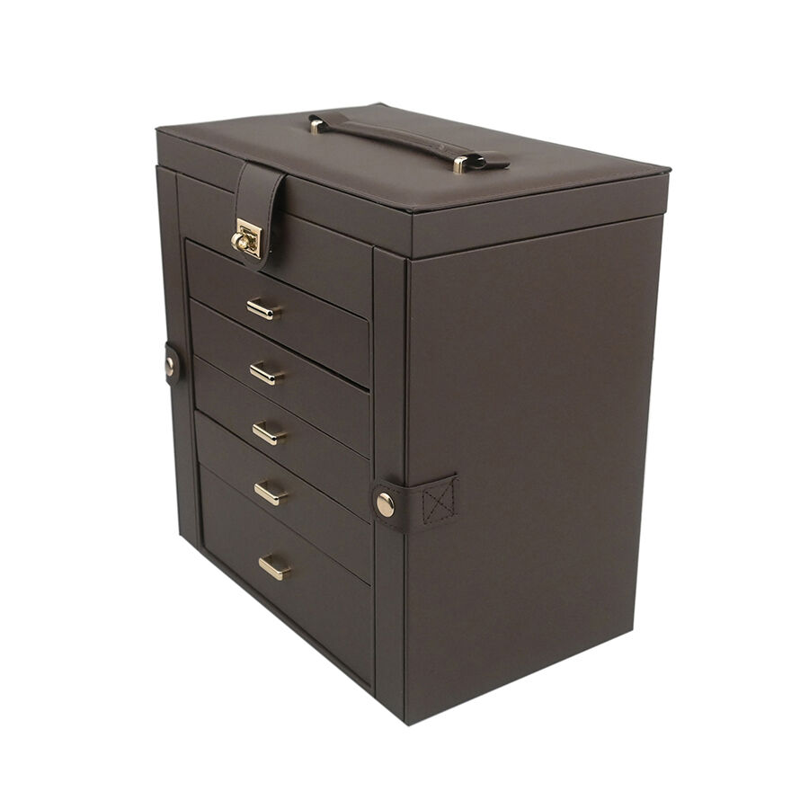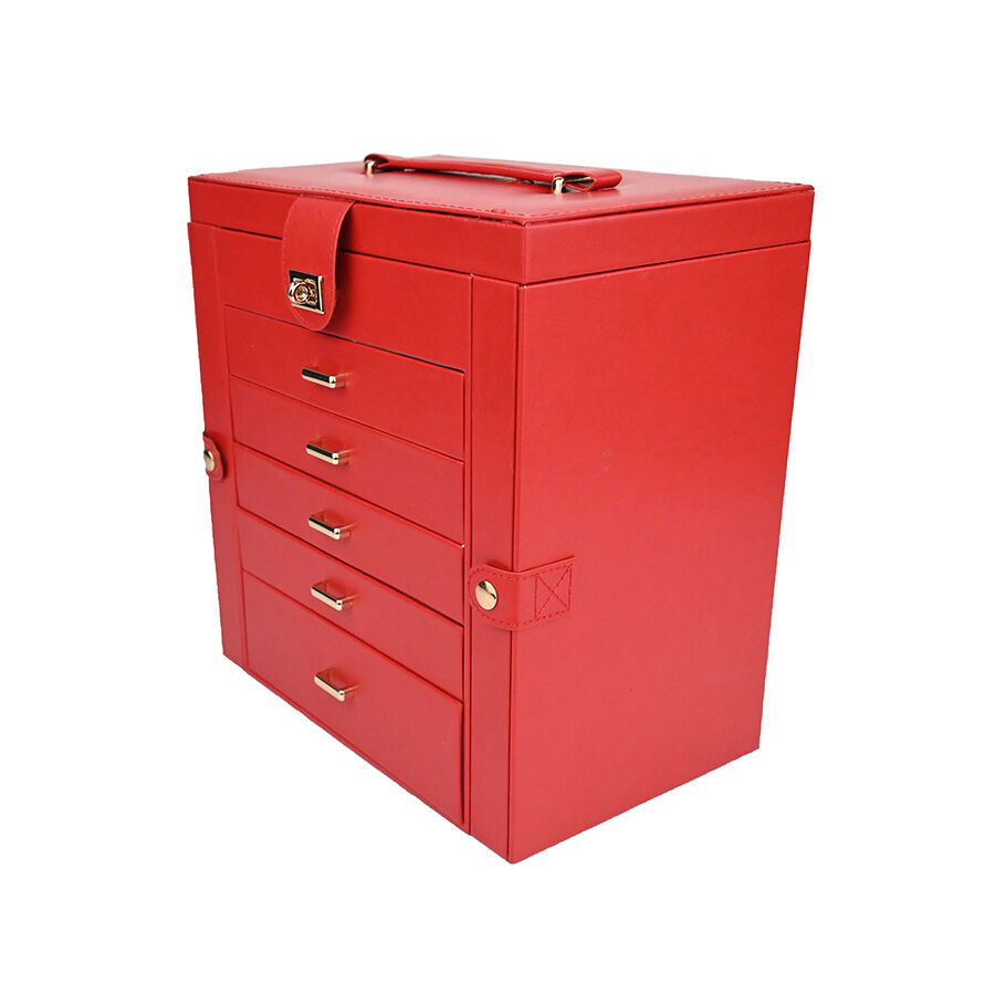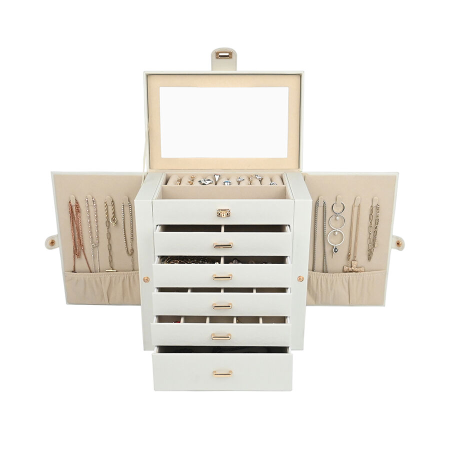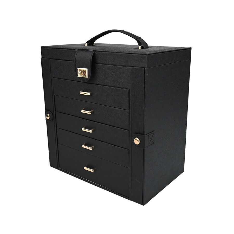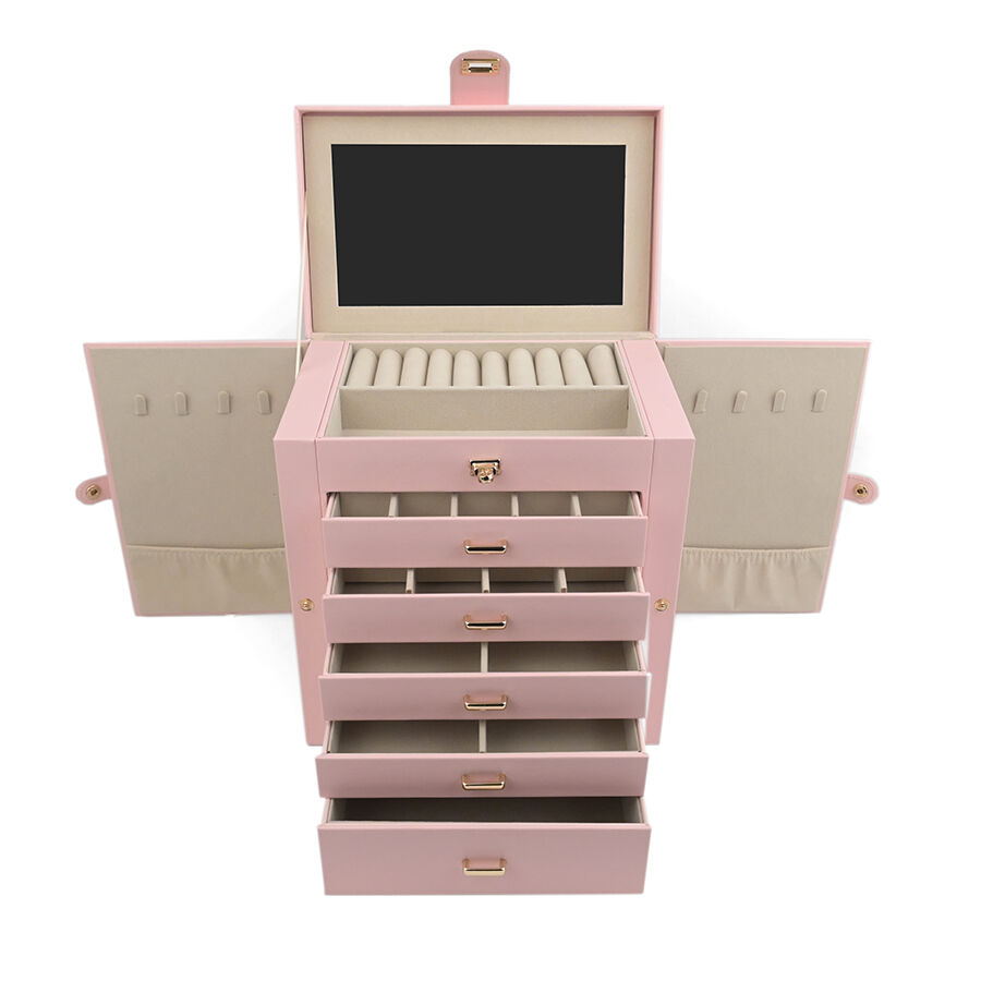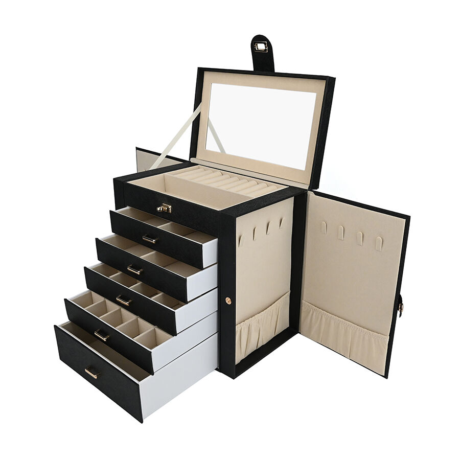 उच्च-क्षमता वाला छह-स्तरीय प्रीमियम लेदर गहने का बॉक्स अंगूठियों, हार और व्यक्तिगत सहायक उपकरणों के लिए, बहुक्रियाशील भंडारण व्यवस्थितकर्ता