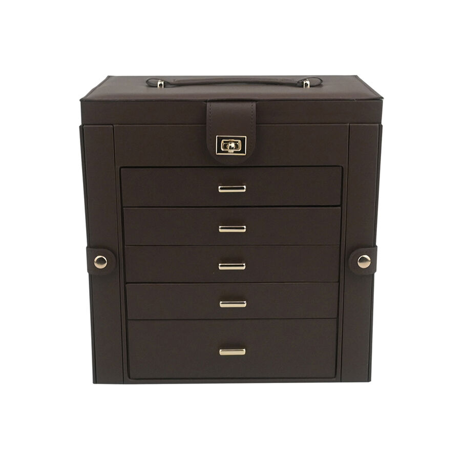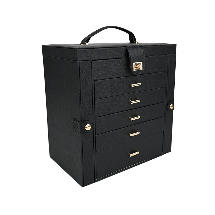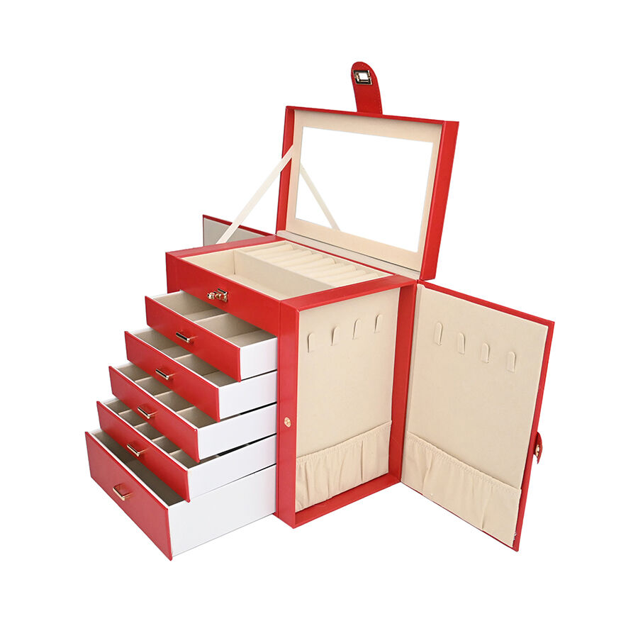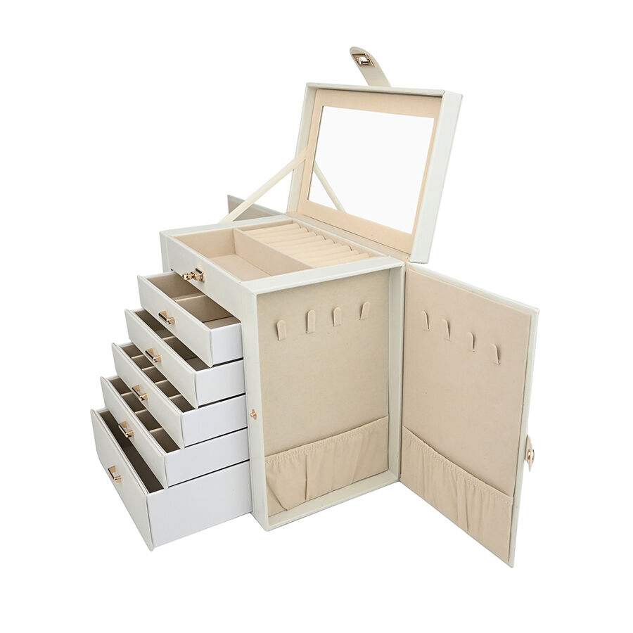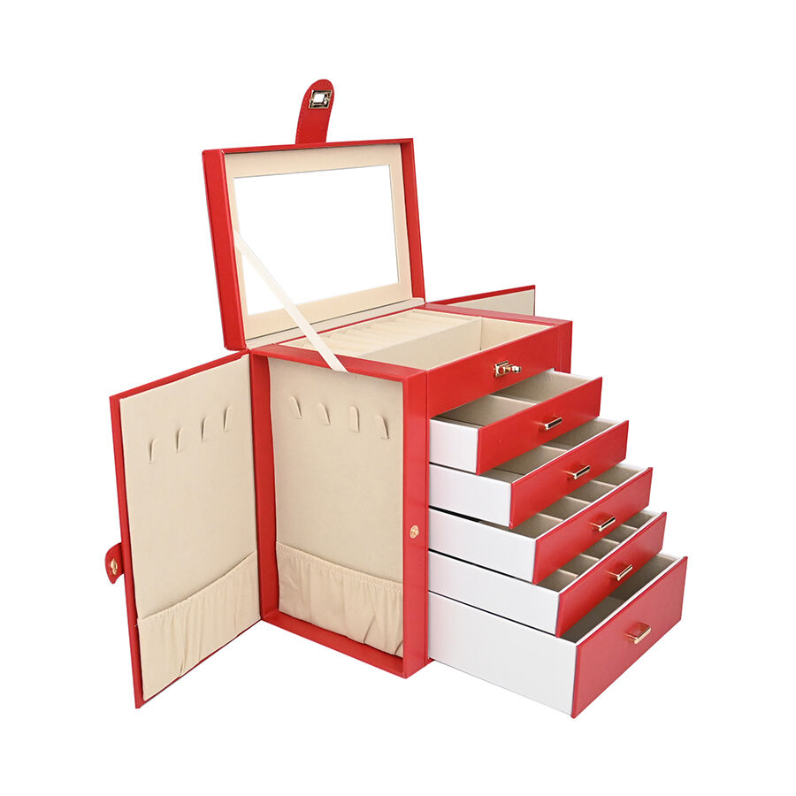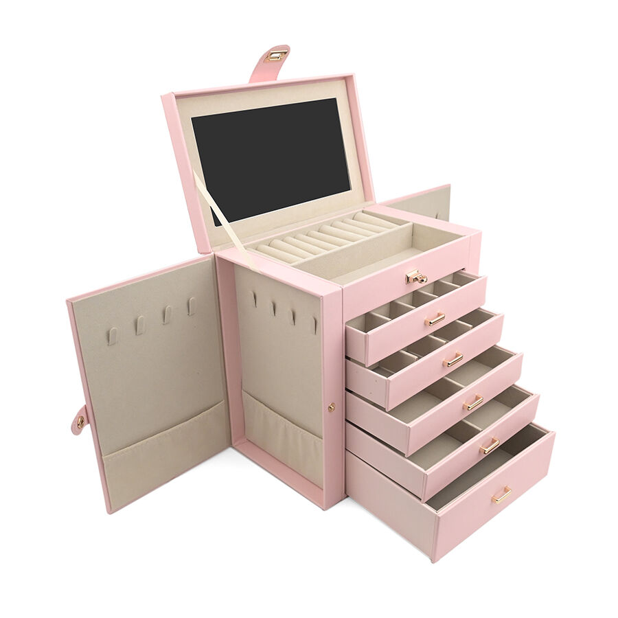 उच्च-क्षमता वाला छह-स्तरीय प्रीमियम लेदर गहने का बॉक्स अंगूठियों, हार और व्यक्तिगत सहायक उपकरणों के लिए, बहुक्रियाशील भंडारण व्यवस्थितकर्ता