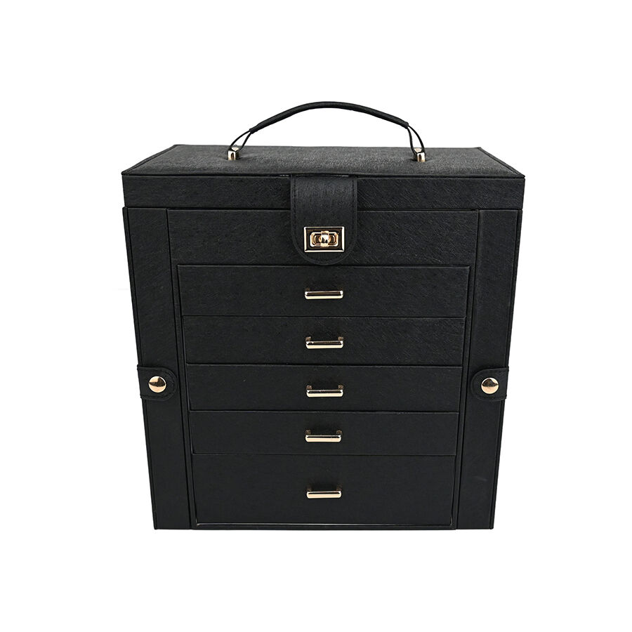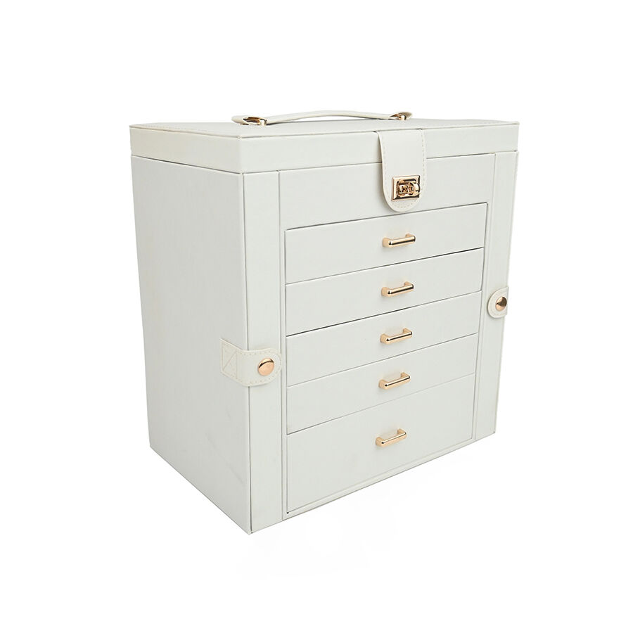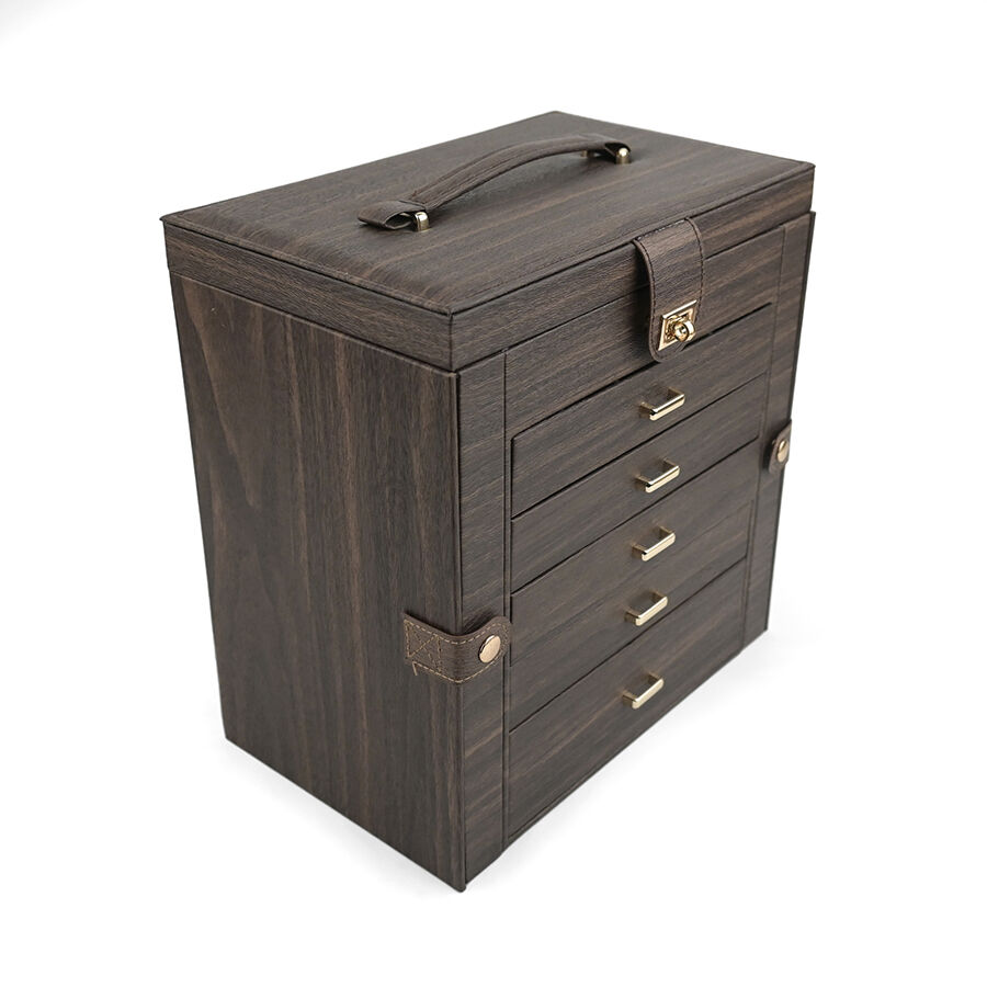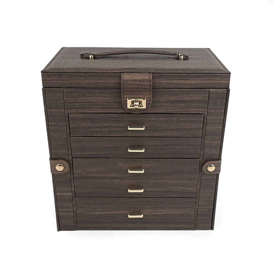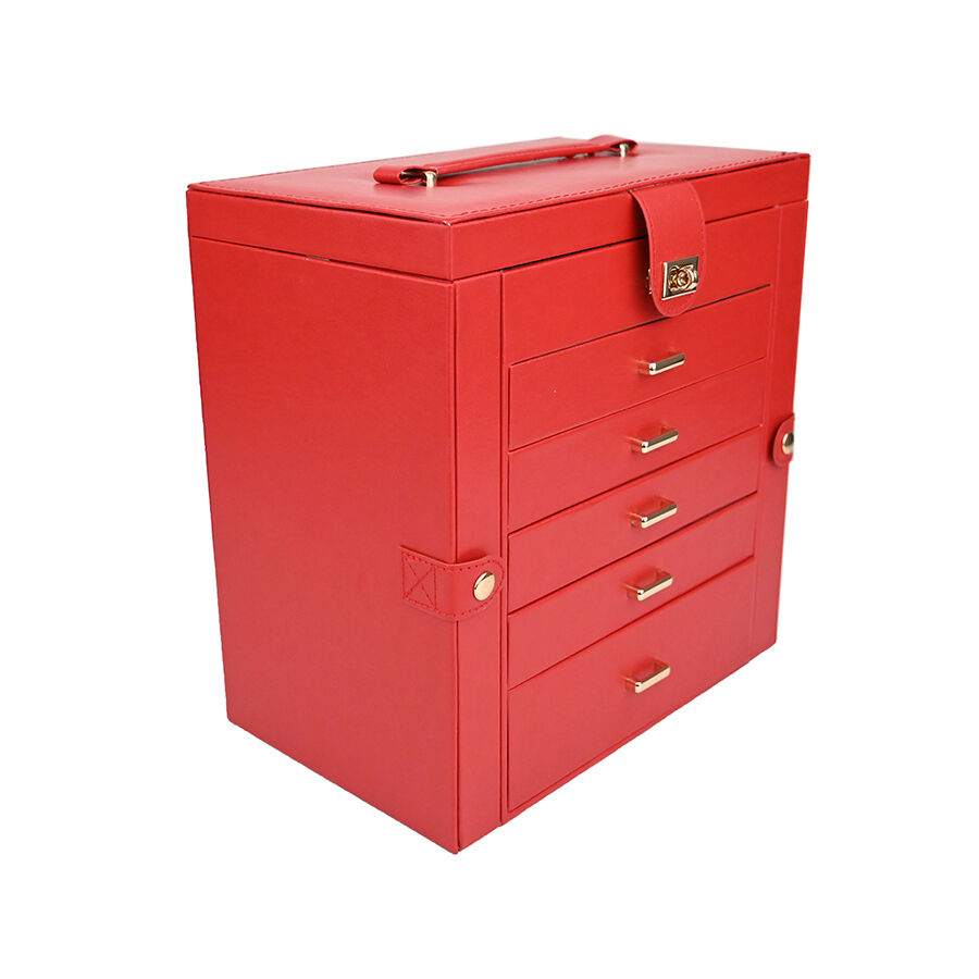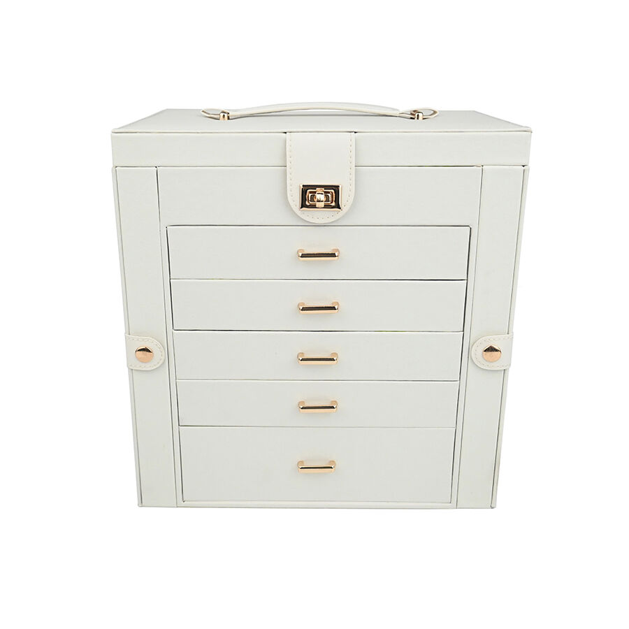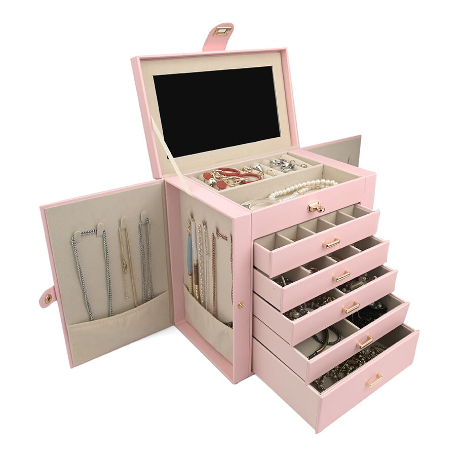 उच्च-क्षमता वाला छह-स्तरीय प्रीमियम लेदर गहने का बॉक्स अंगूठियों, हार और व्यक्तिगत सहायक उपकरणों के लिए, बहुक्रियाशील भंडारण व्यवस्थितकर्ता