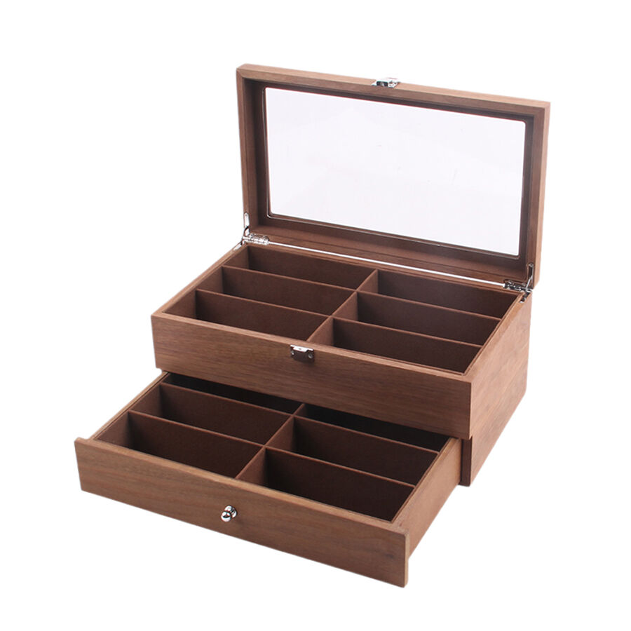 Elegáns 12 rekeszes fa szemüvegdoboz | Szemüvegeit rendezetten és szépen kiállítva tartja