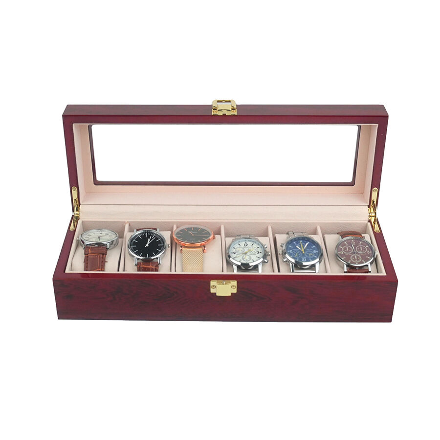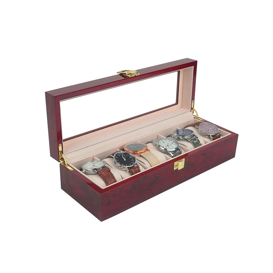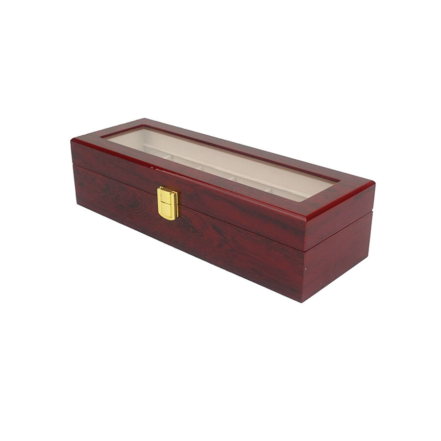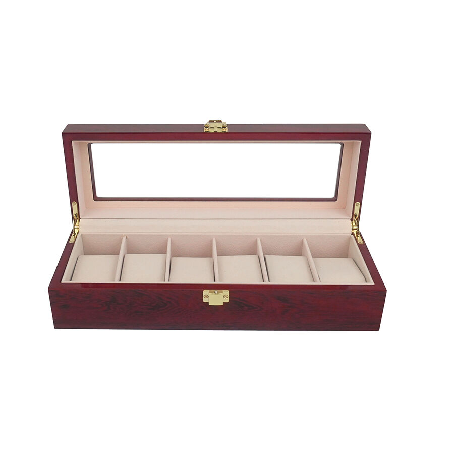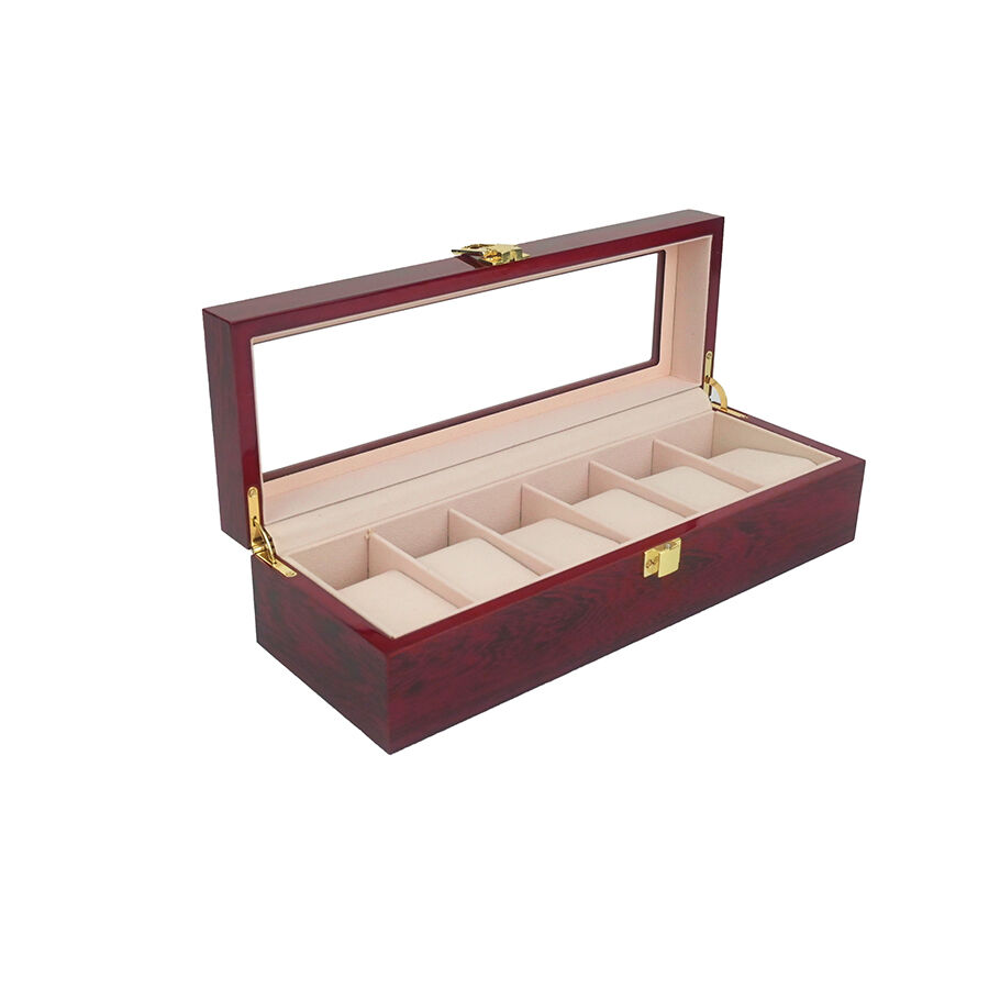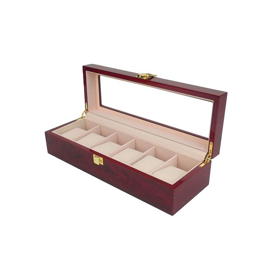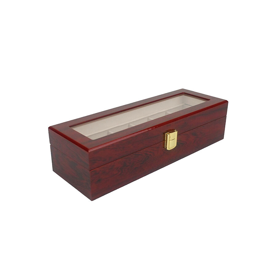 6 rekeszes, festett fa óradoboz, amelyet különösen az órák és finom kiegészítők biztonságos és rendezett tárolására terveztek.