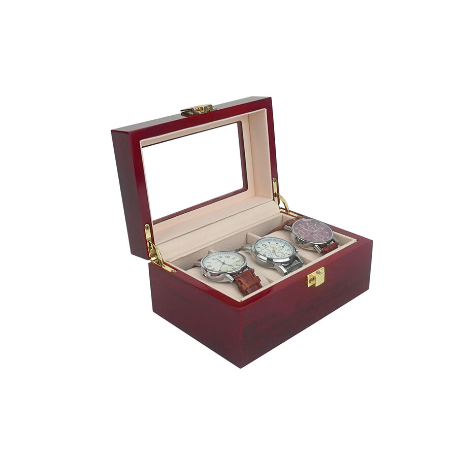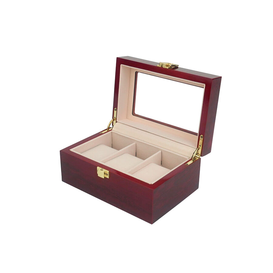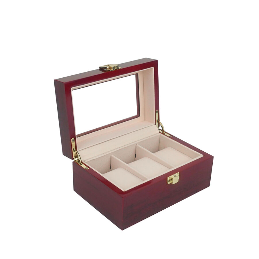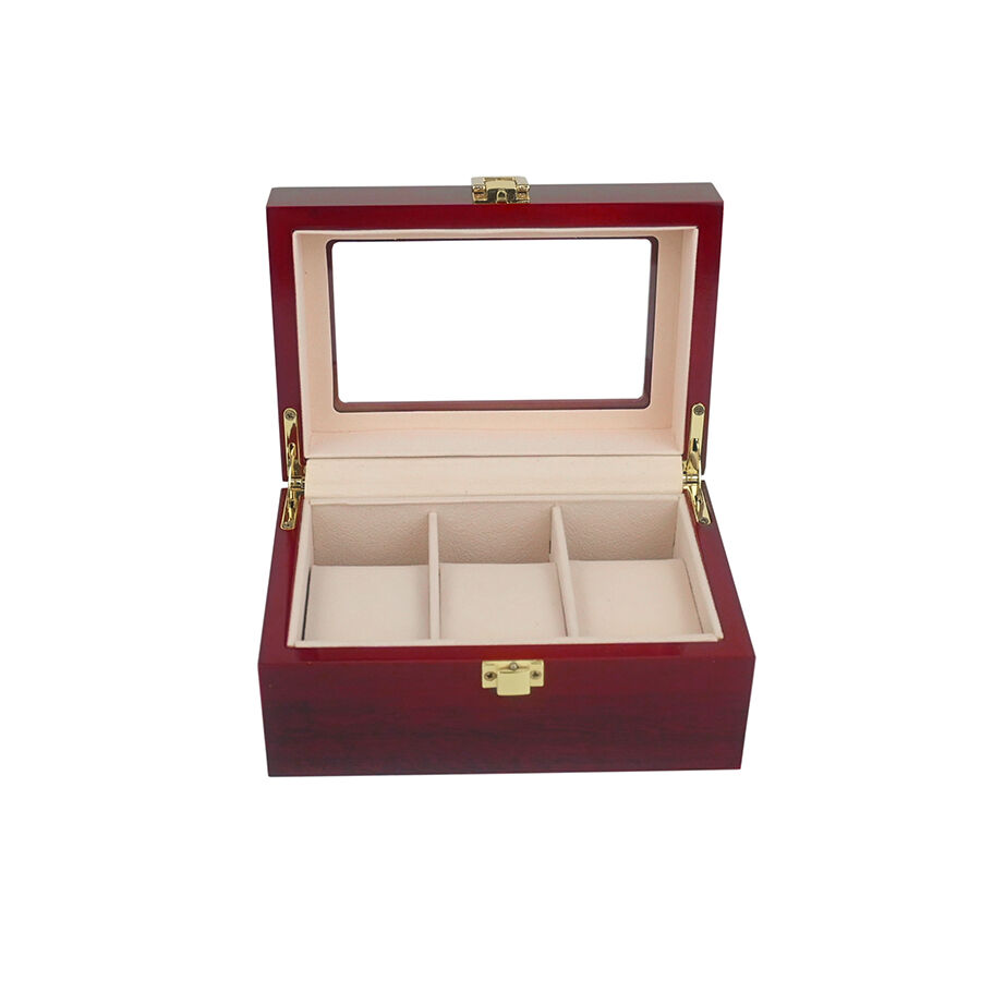 Kiváló minőségű 3 rekeszes lakkozott óradoboz, pormentes hordozható óraszervező megjelenítő tetőablakkal otthoni használatra
