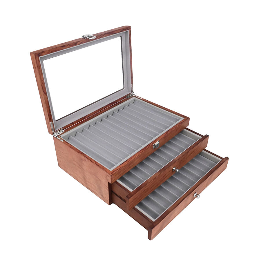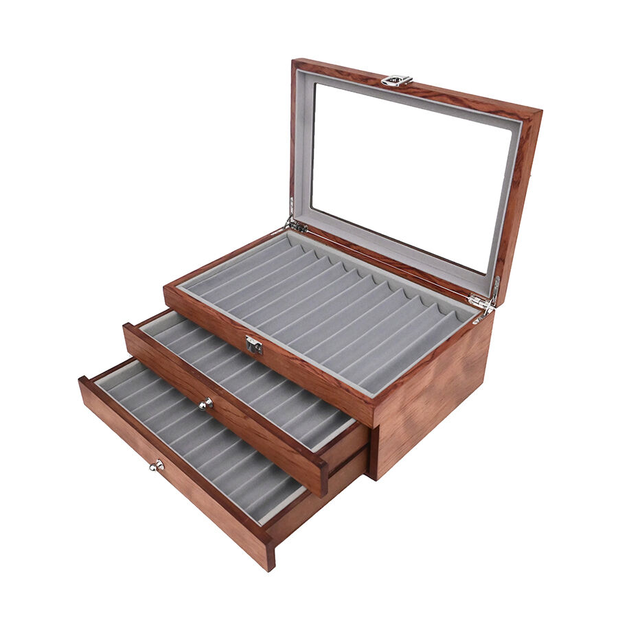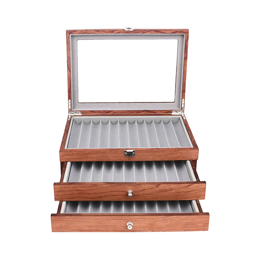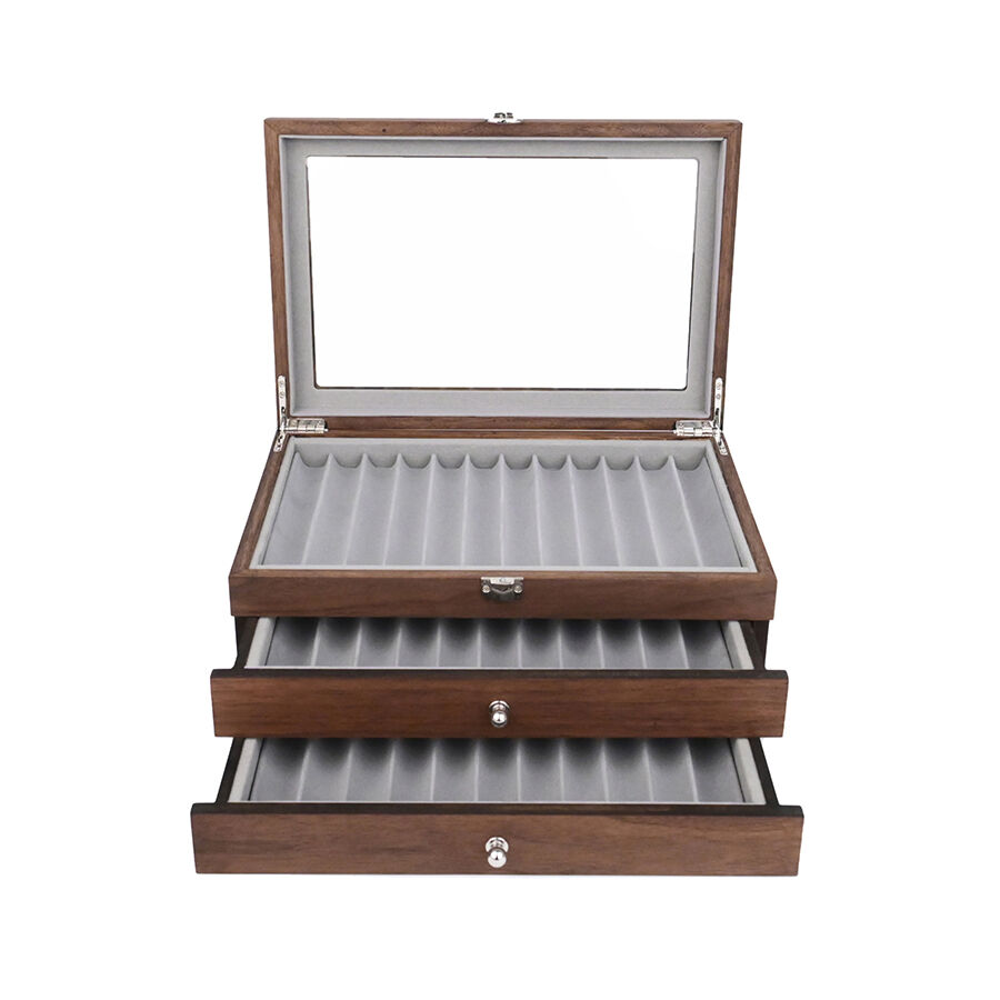 Többrétegű kihúzható, 34 rekeszes fa tolltartó doboz, premium és személyre szabott tolltartó doboz