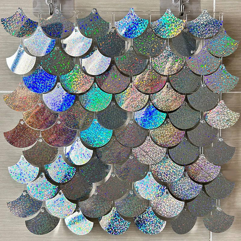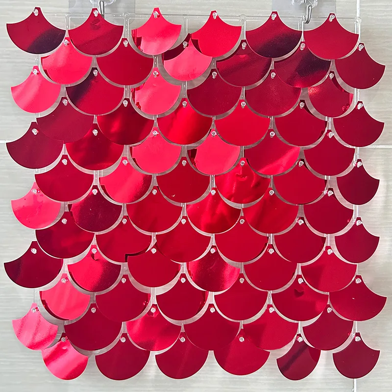 Crafted with high-quality sequin material, this shimmering wall panel will instantly elevate the ambiance of any room. The fan shape design adds a unique and eye-catching element to your decor, creating a beautiful backdrop for photos and memories that will last a lifetime.