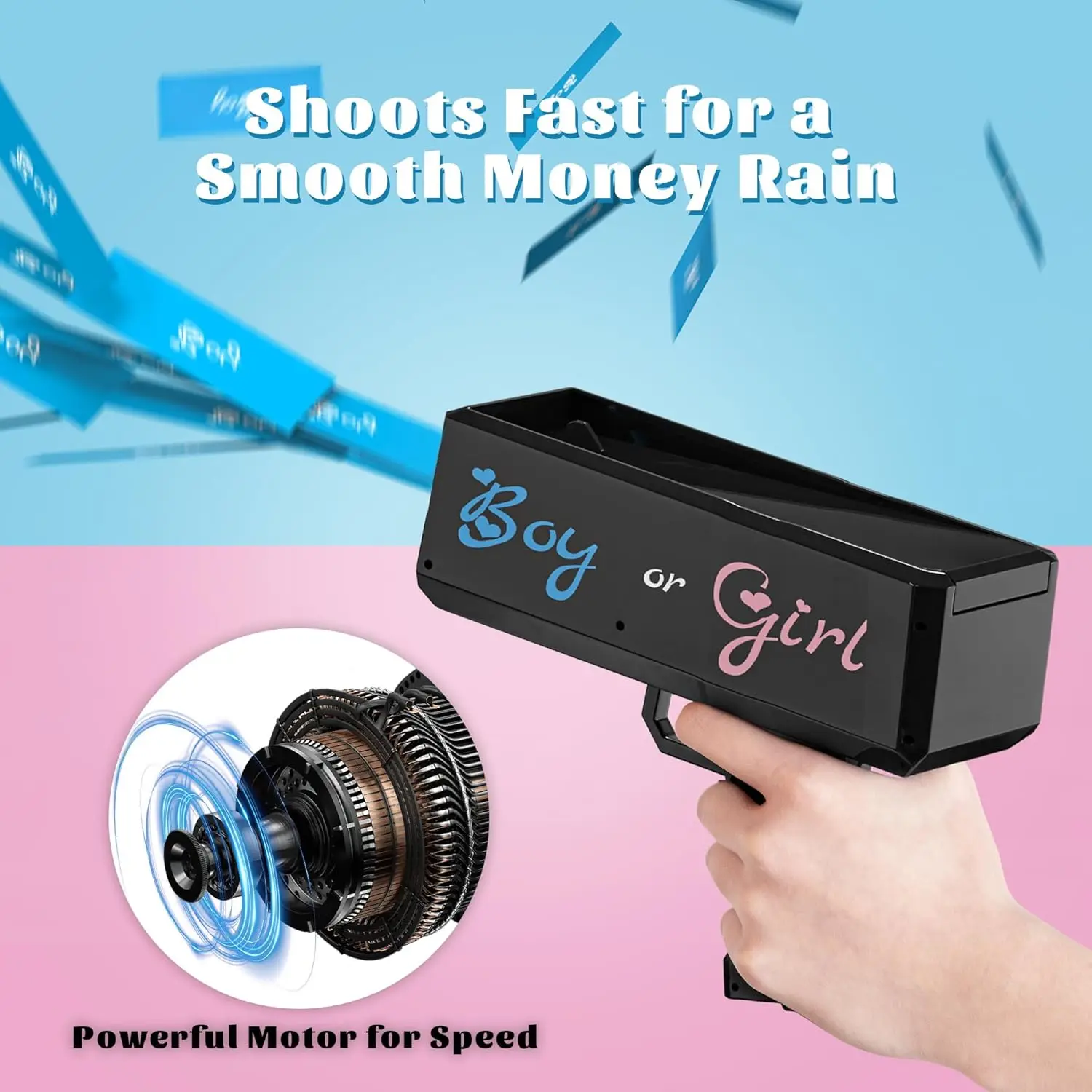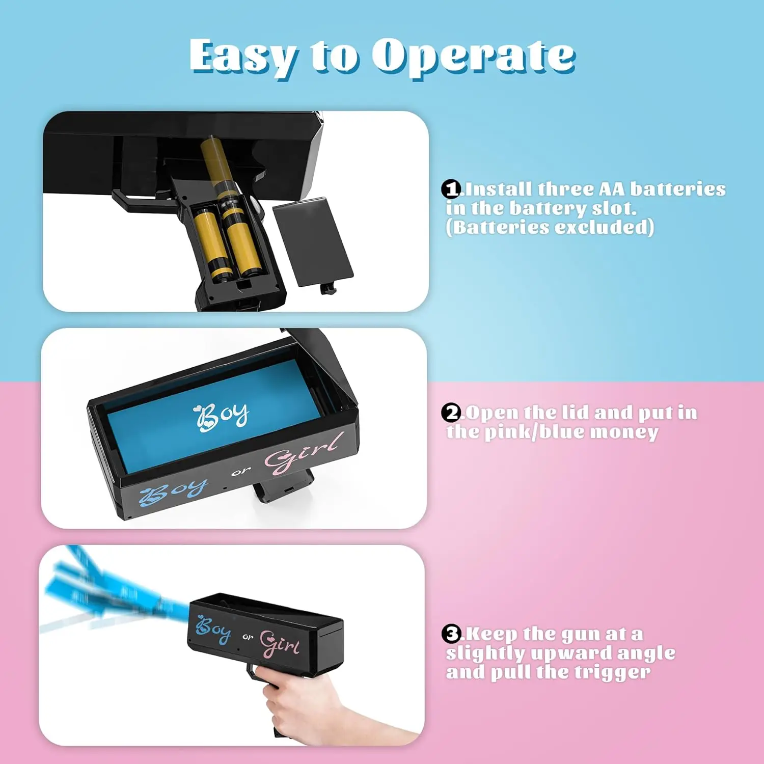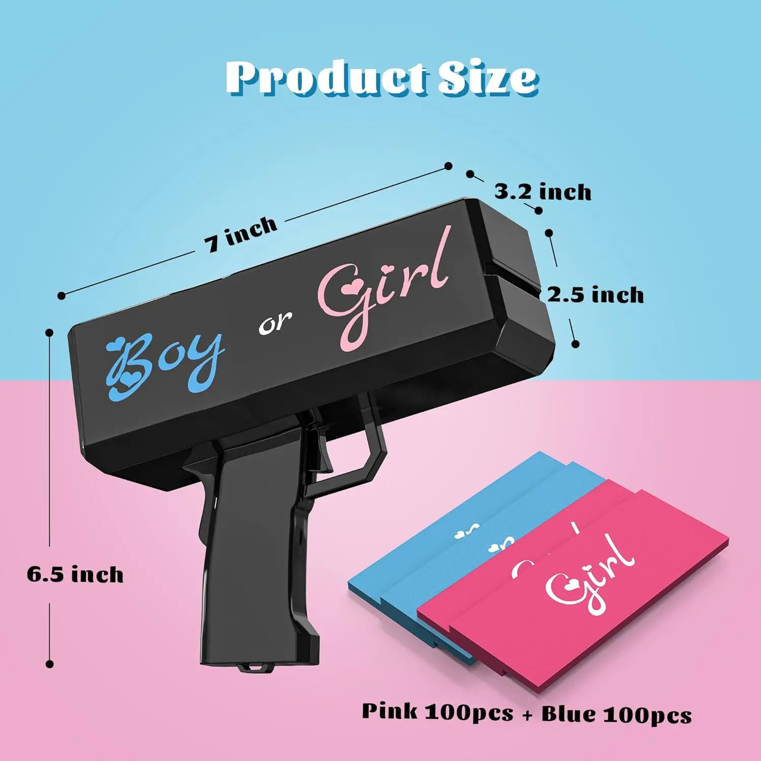 Make your gender reveal party extra fun and exciting with the Boys and Girls Spray Money Gun Toys from Yiwu Shineparty! This innovative product is a money shooter that will add a unique touch to your special celebration.