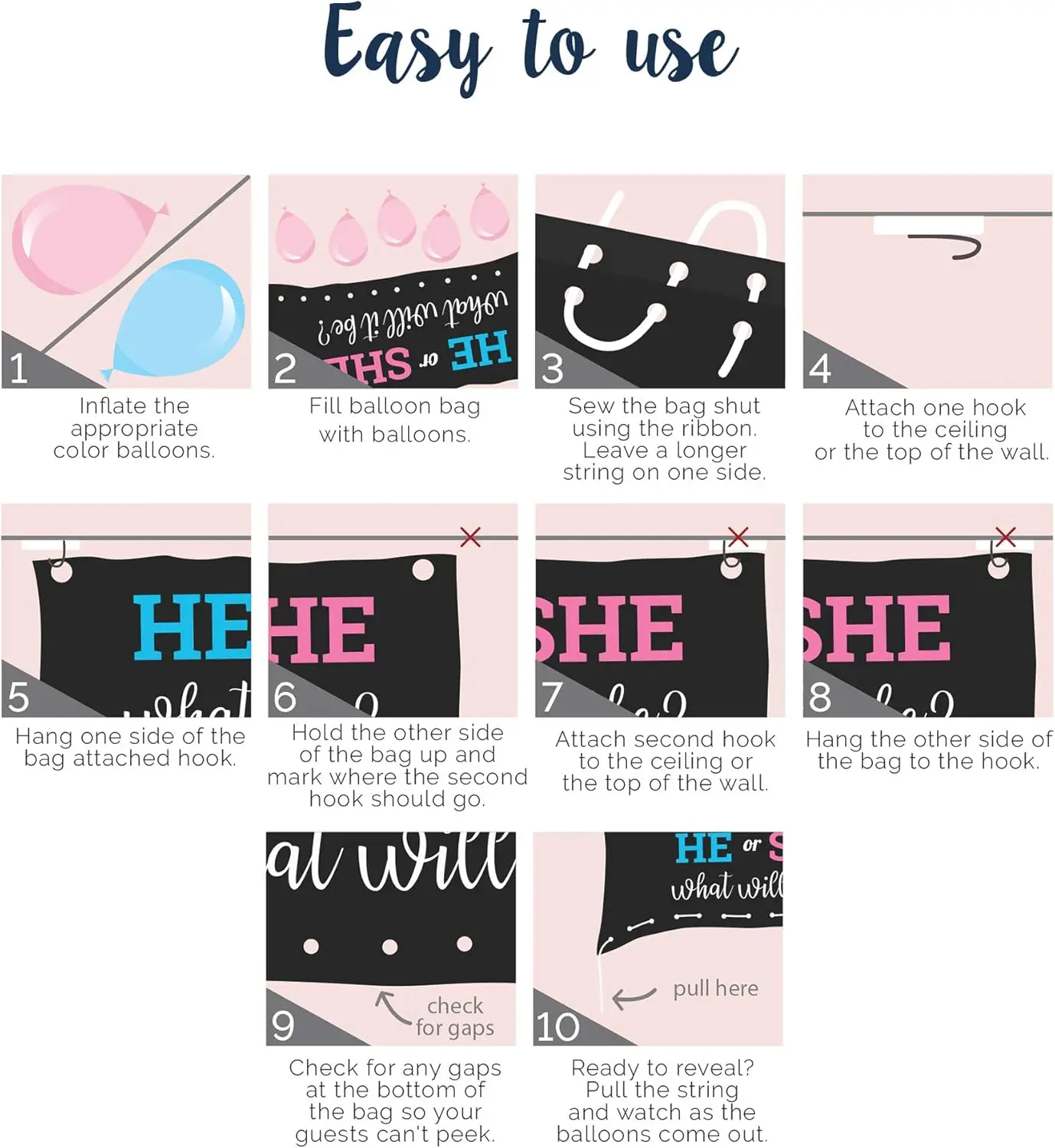 Not only is the Gender Reveal Balloon Drop Bag easy to use, but it's also made of high-quality materials that are sure to last. You can trust that this decoration kit will hold up throughout your party and create a beautiful and memorable moment for everyone in attendance.