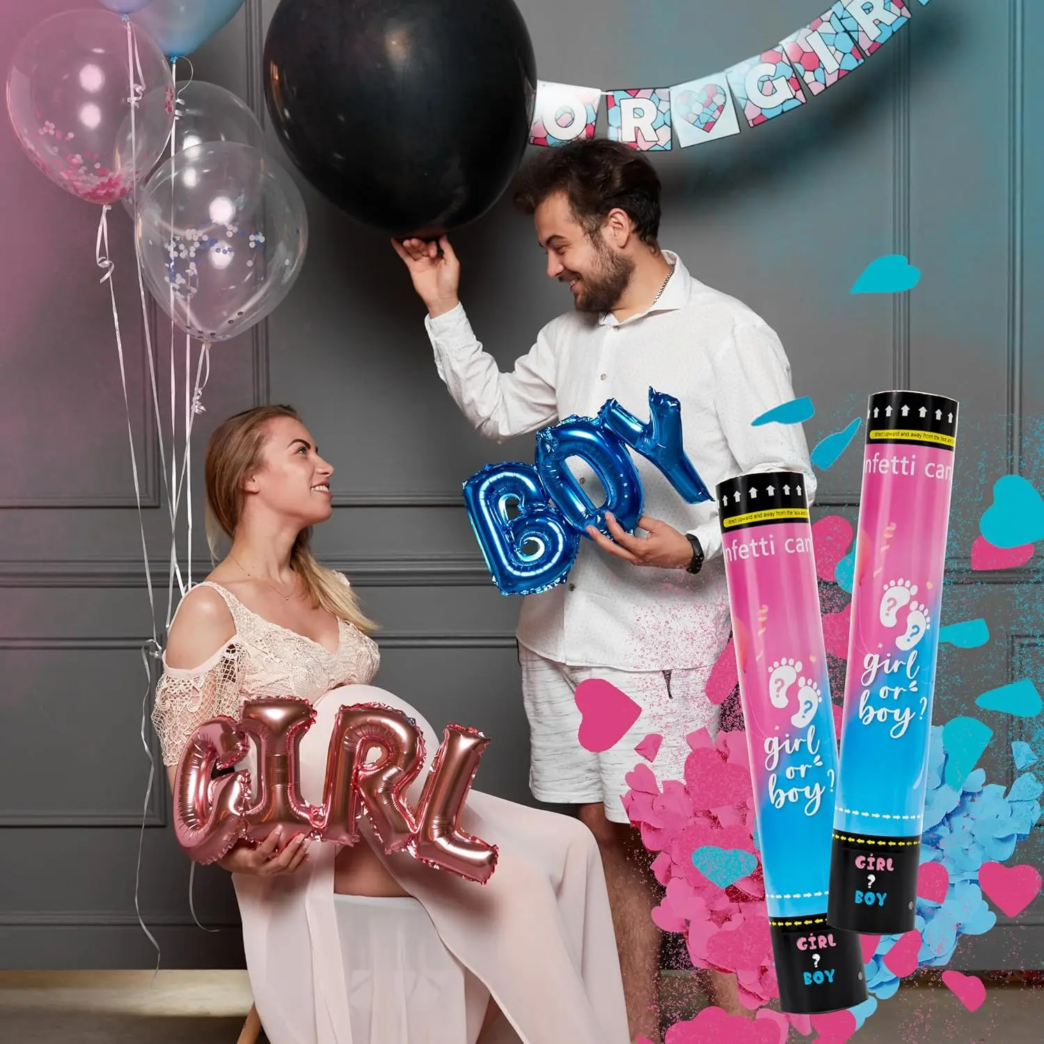 Not only are these confetti poppers great for gender reveals, but they are also ideal for baby showers, baptisms, and other special occasions. Add a touch of whimsy and joy to your party with these colorful cannons