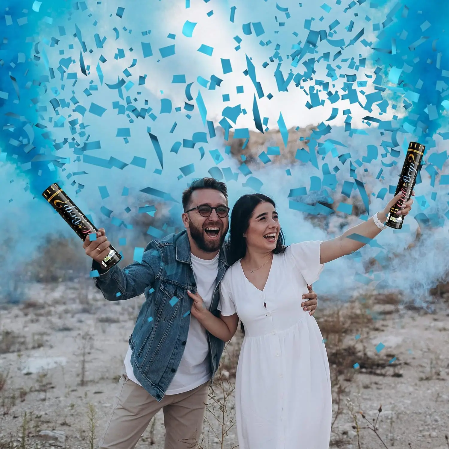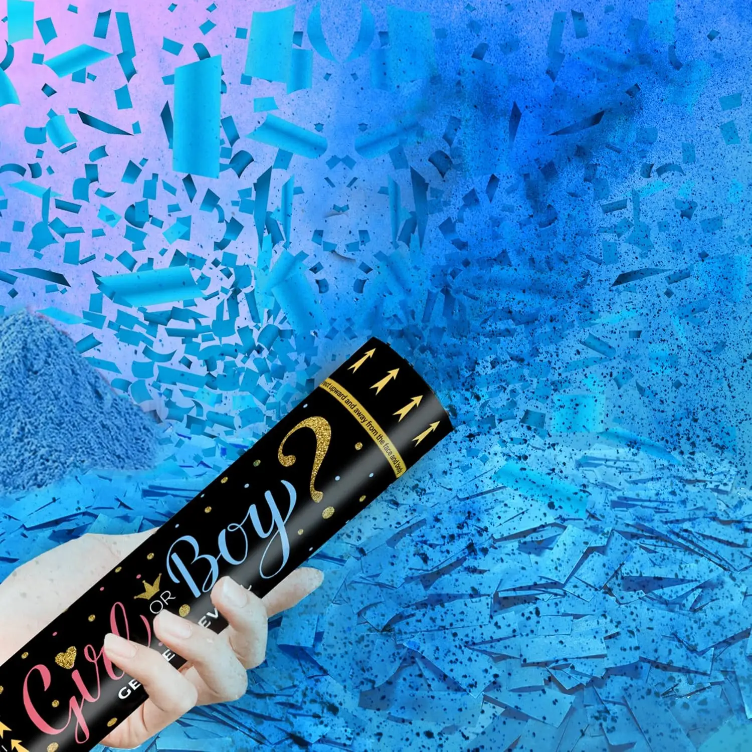 Each cannon is filled with biodegradable confetti or powder in pink or blue, depending on the gender you're revealing. Simply twist the bottom of the cannon and watch as the confetti or powder shoots out in a burst of color, revealing whether you're having a boy or a girl.