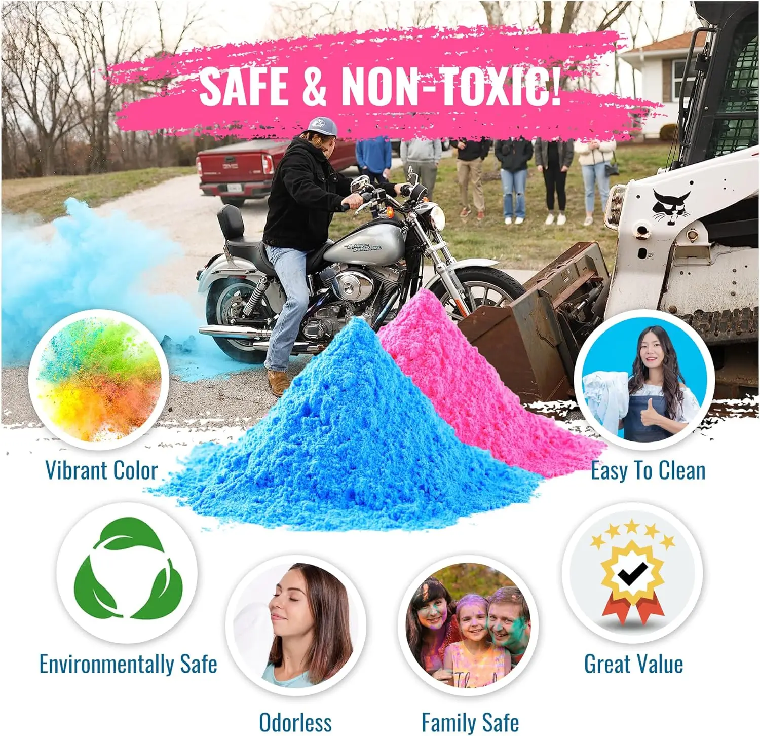 Our Gender Reveal Powder Colored Powder is safe, non-toxic, and easy to use. Simply pop open the bottle and sprinkle the powder in the air for a dramatic effect. The vibrant colors are sure to make a statement and leave a lasting impression on your guests.
