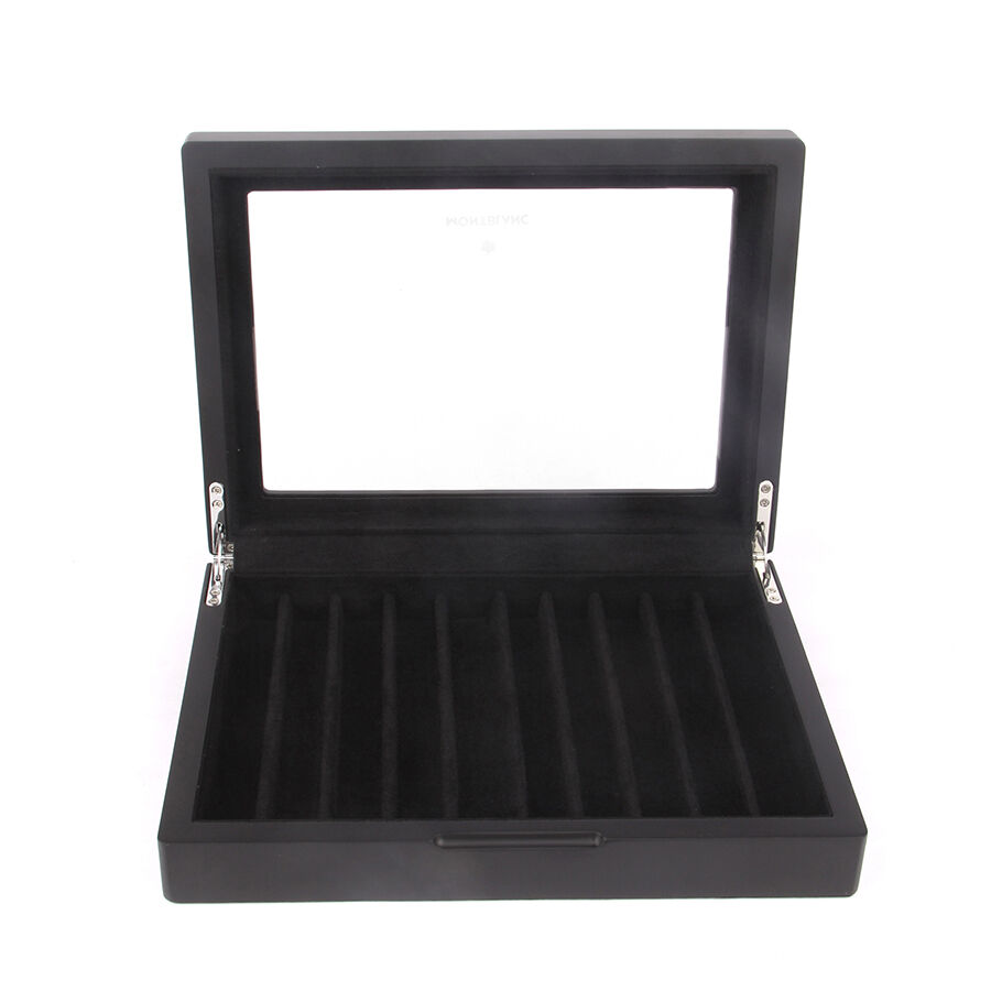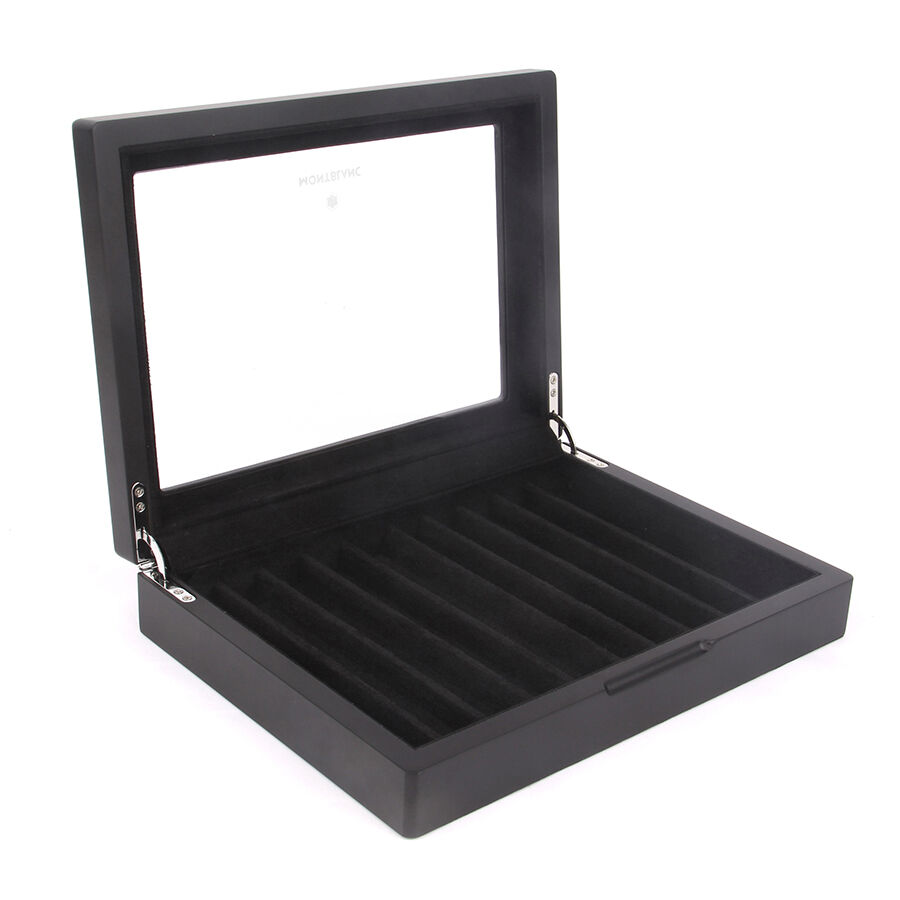 10-delat svart matt skrin för fyllnadsfjädrade pennor, presentlåda, klafflåda med transparent lock, displaylåda
