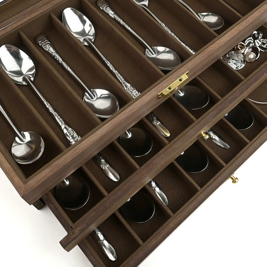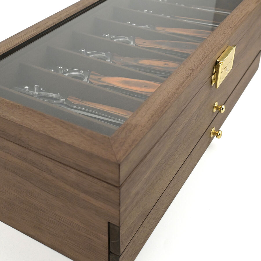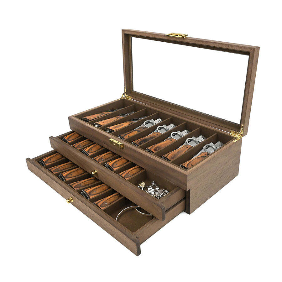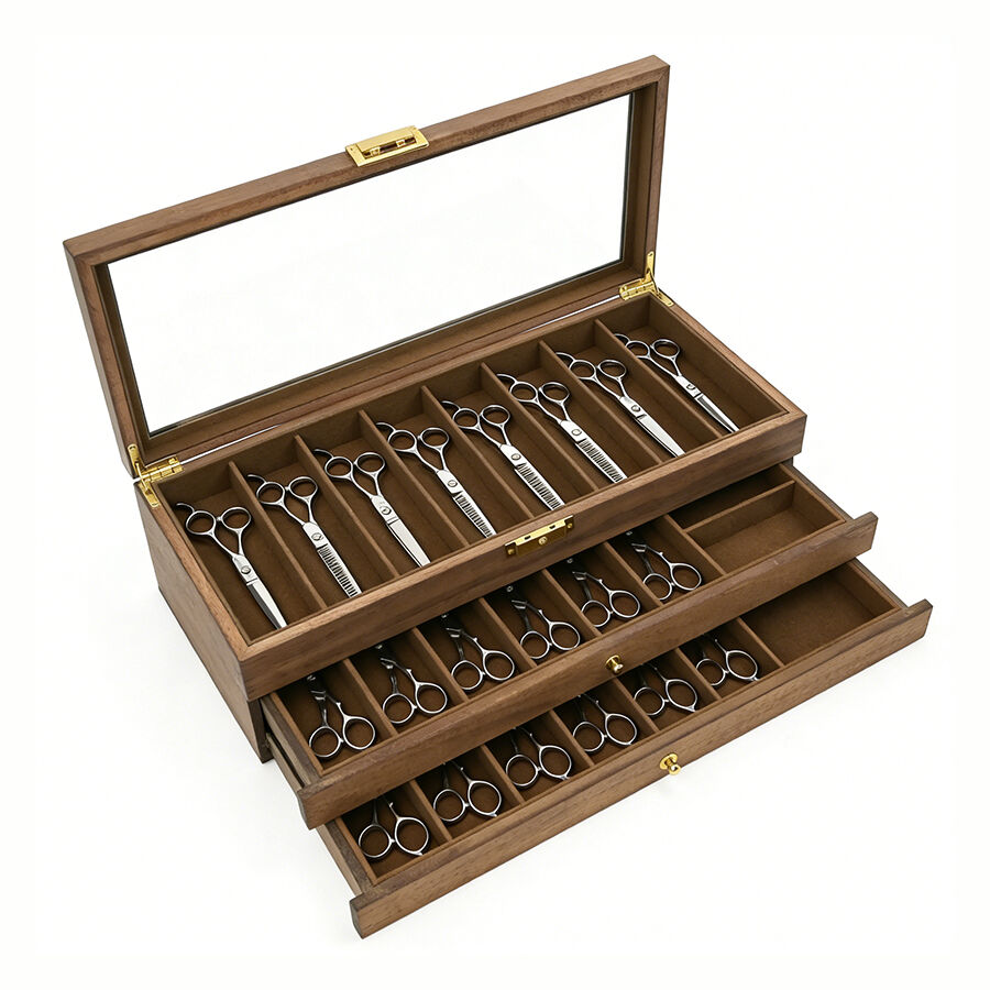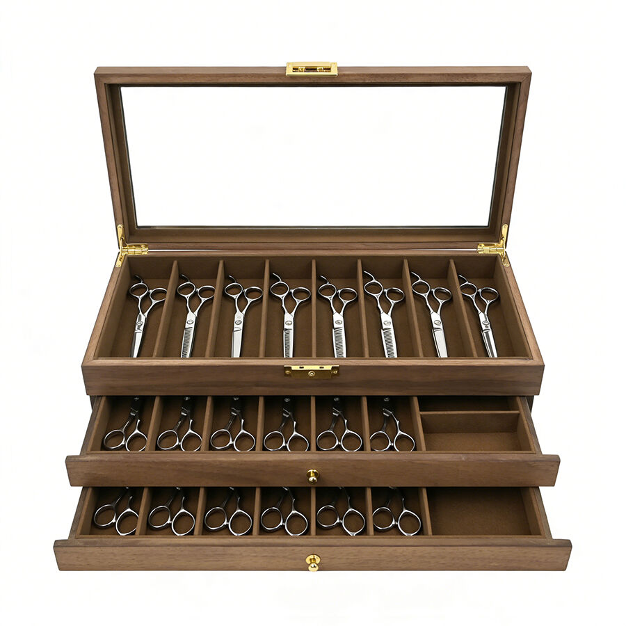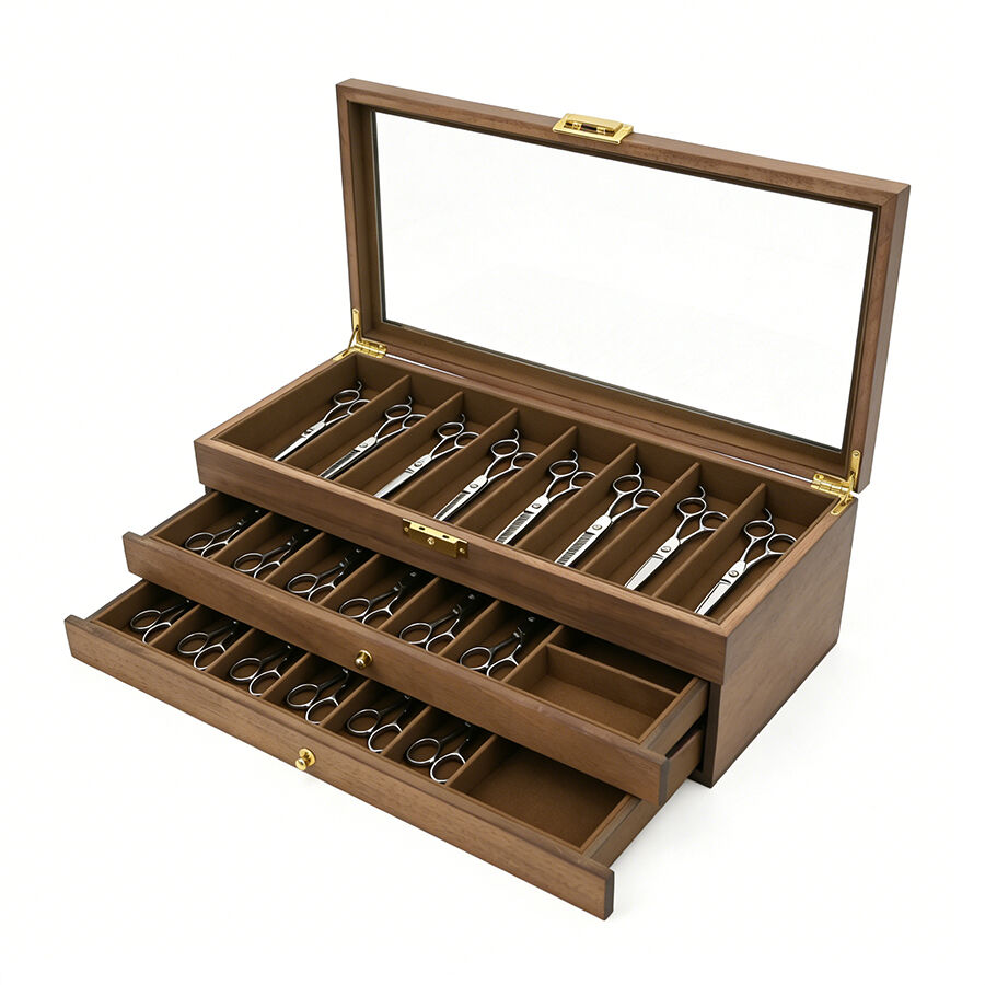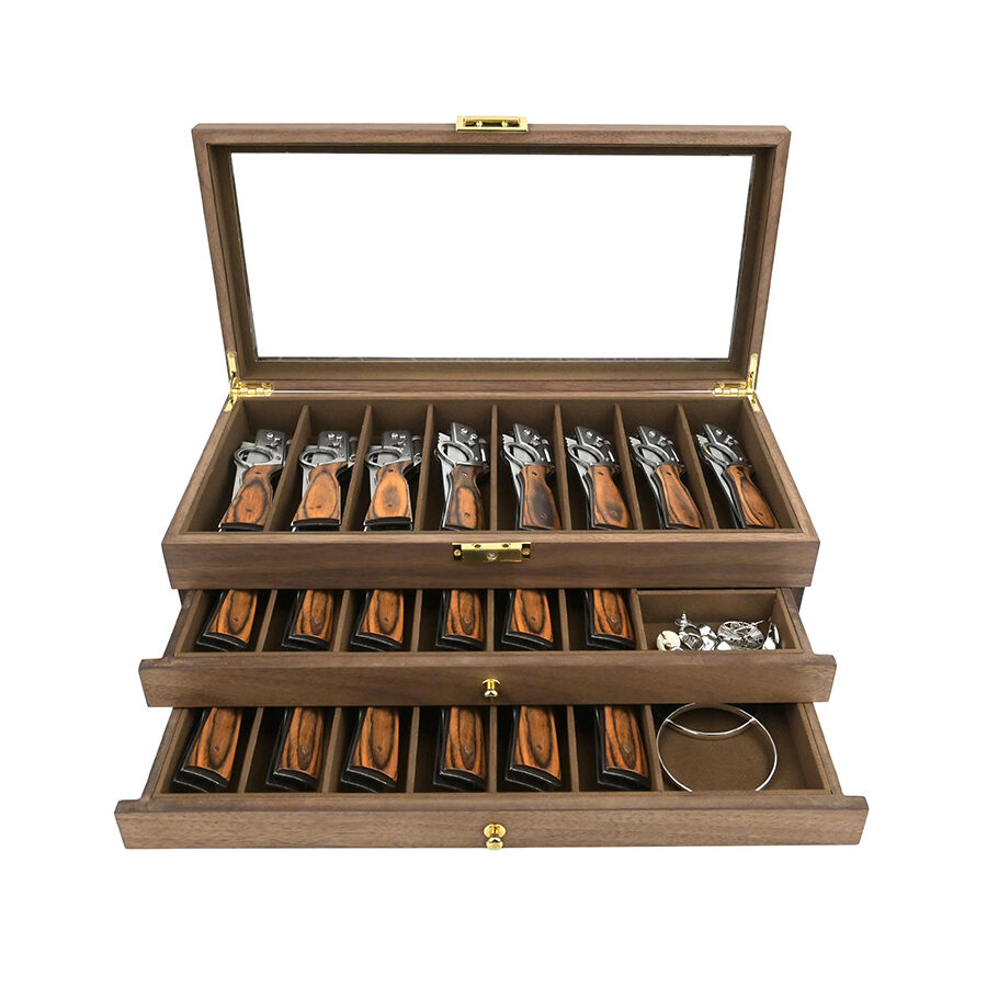 three layer wooden knife storage box with transparent skylight dustproof and lockable design display box for soup spoons and hairdressers-7