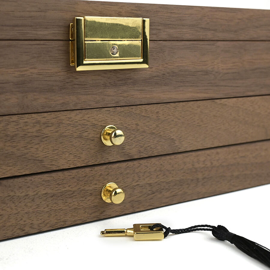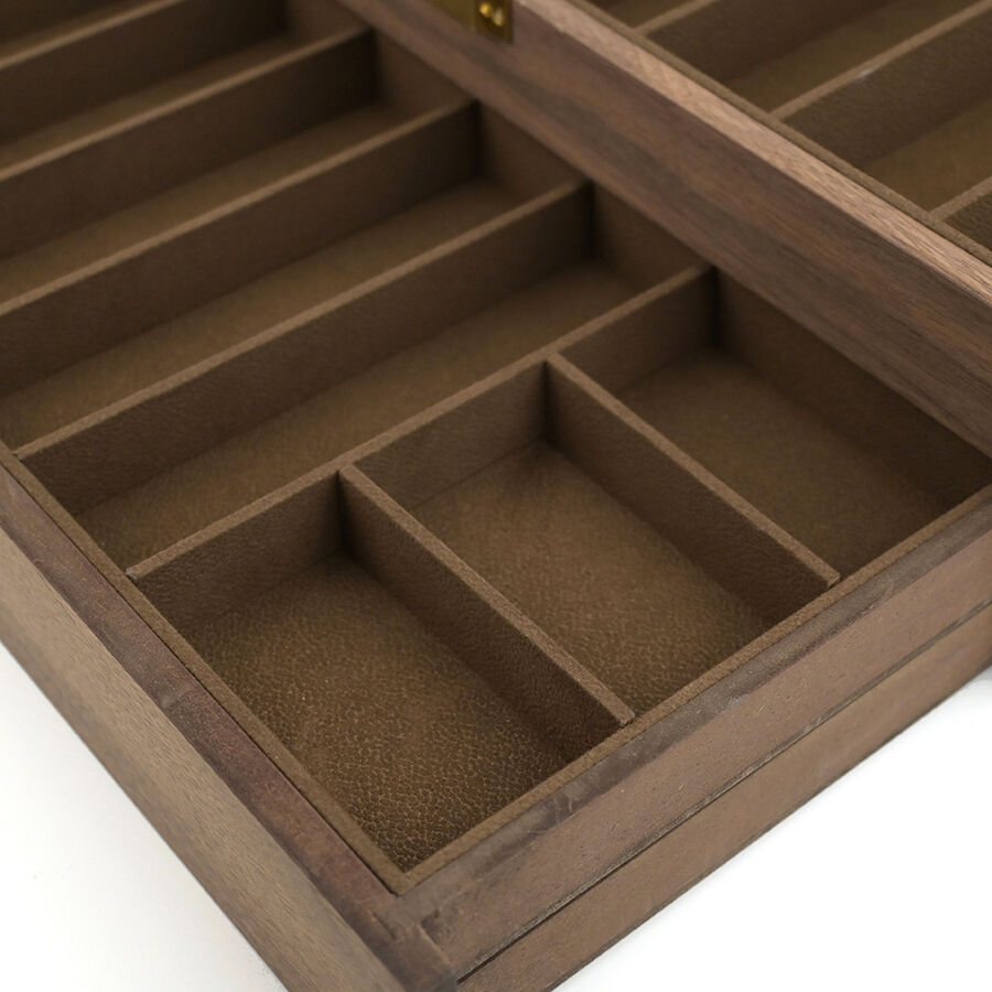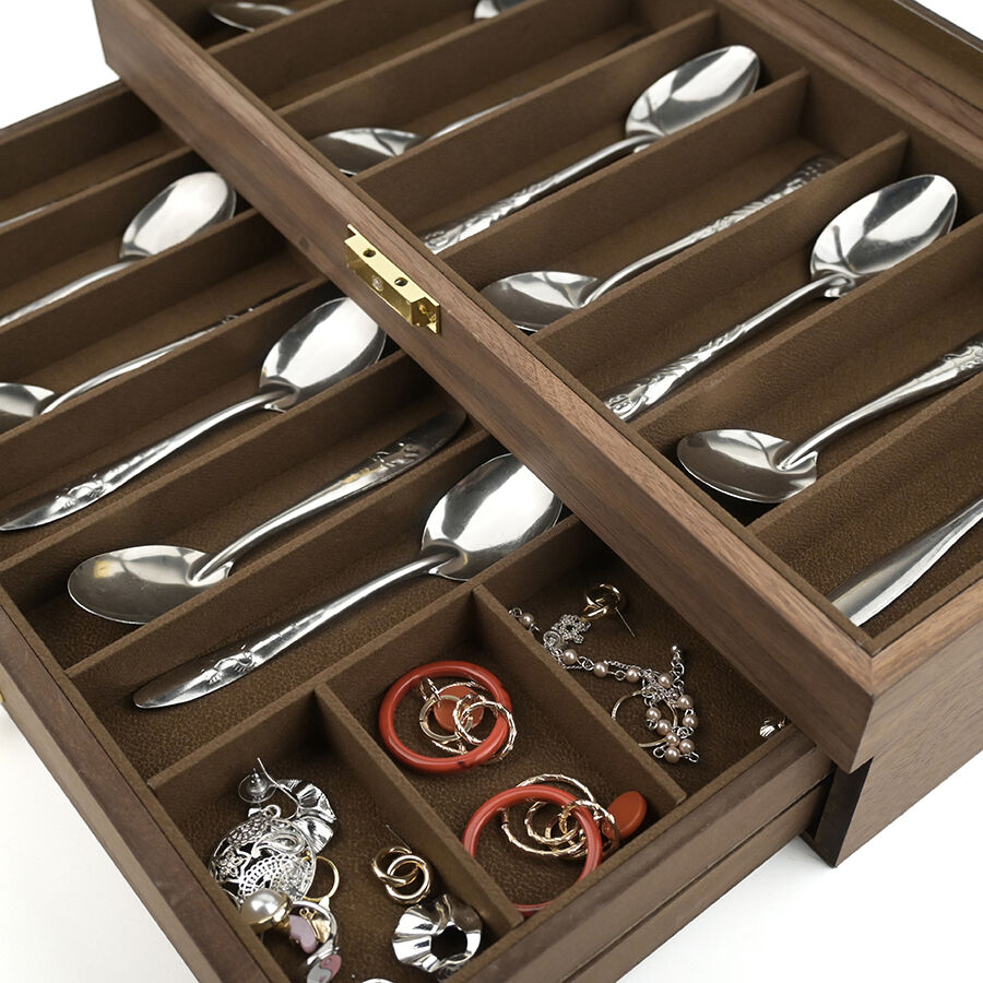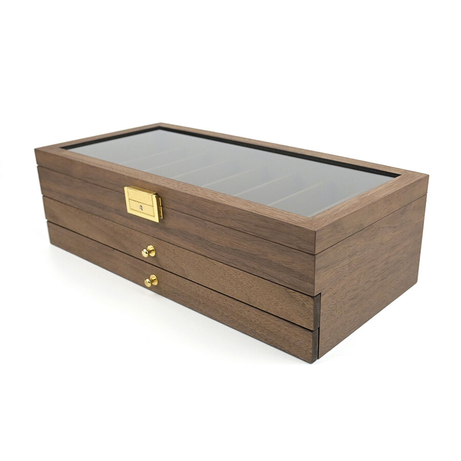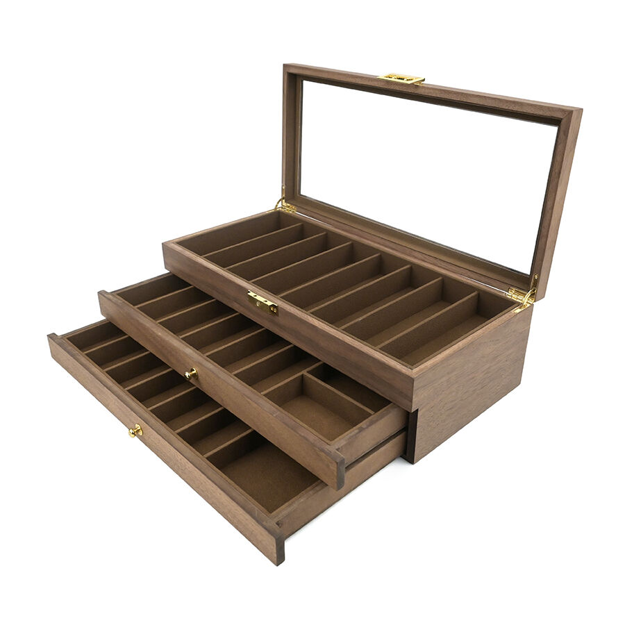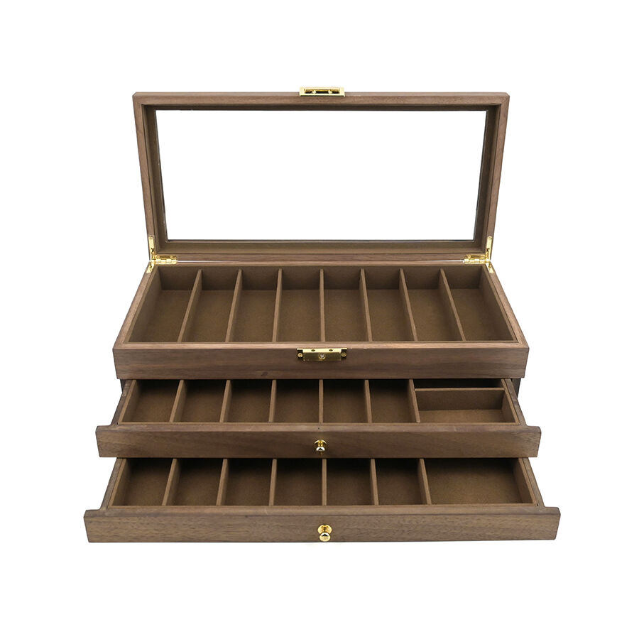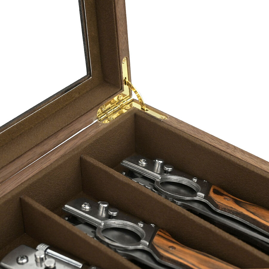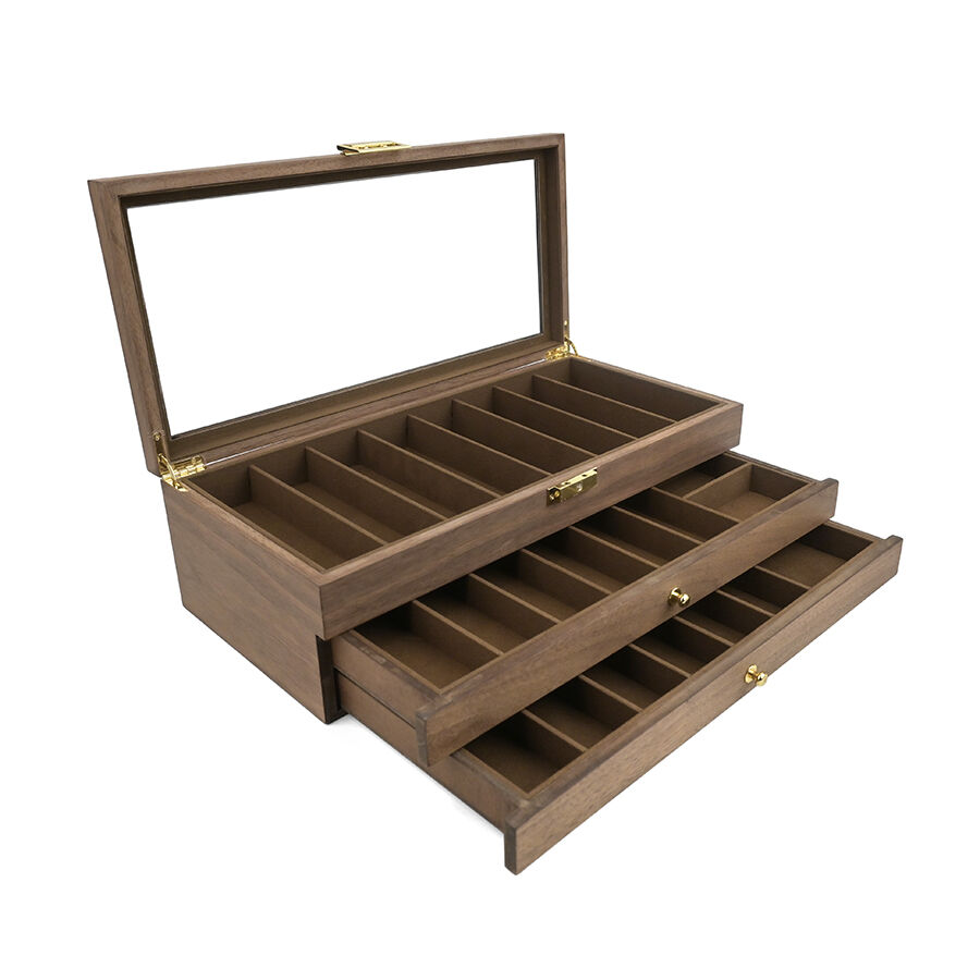 three layer wooden knife storage box with transparent skylight dustproof and lockable design display box for soup spoons and hairdressers-7