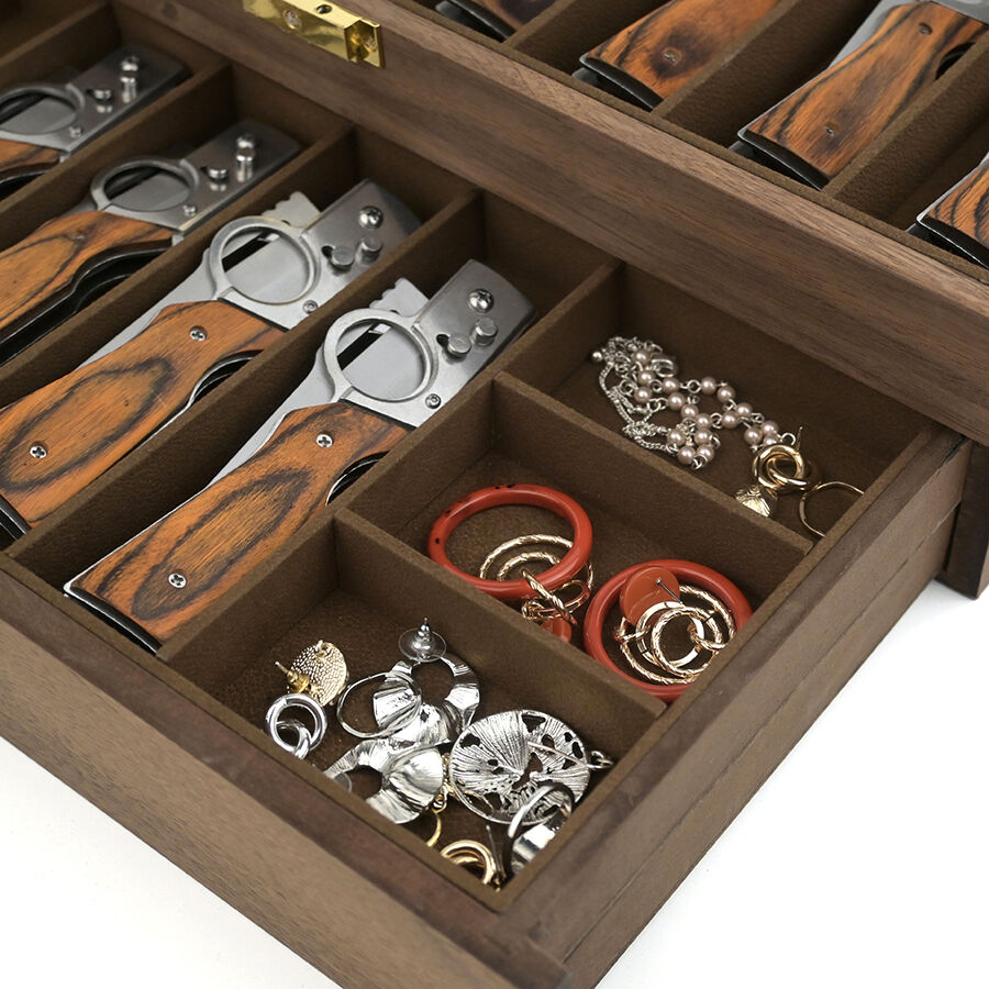 three layer wooden knife storage box with transparent skylight dustproof and lockable design display box for soup spoons and hairdressers-5
